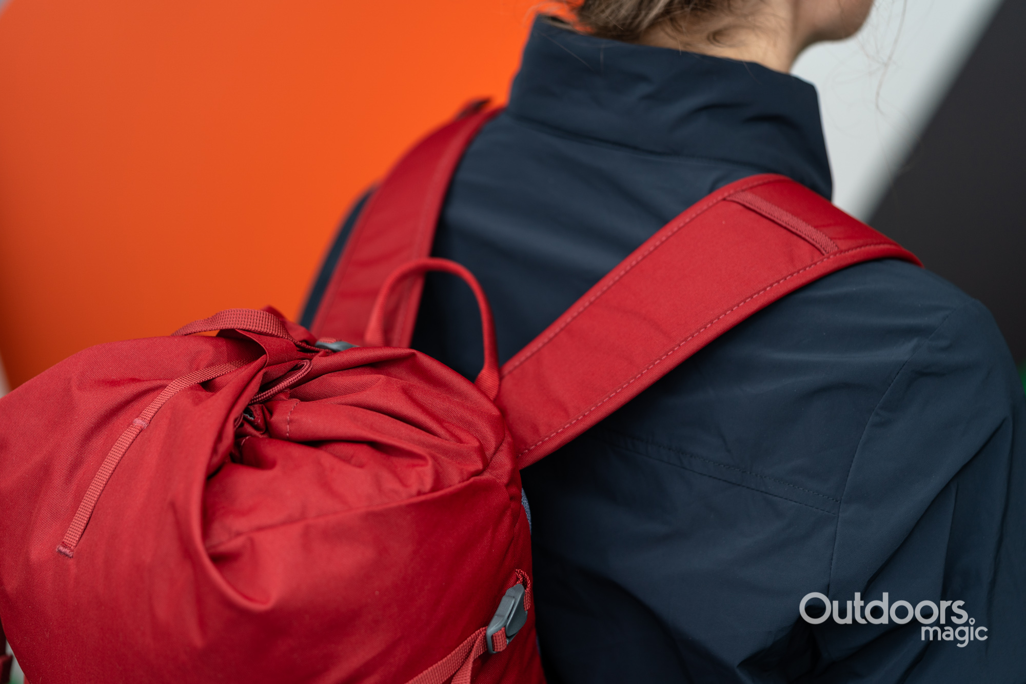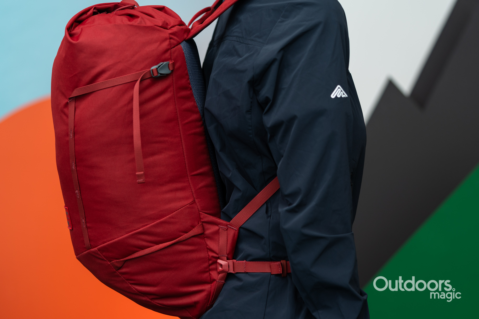 The overall shape of the Rock Up 20 is narrow enough that it won’t stick out beyond your own silhouette. It also won’t infringe upon your harness or get in the way of a chalk bag that’s attached to it.