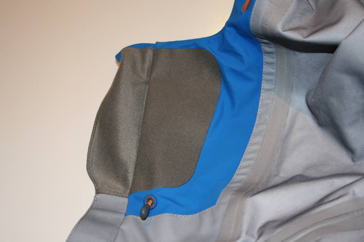 There’s a full helmet hood with a peak that’s not only wired but also lined with a dense foam for additional stiffness. It has four adjustment points including one that shortens the back of the hood for use with a bare head. We also liked the glove-friendly pull-tags.
