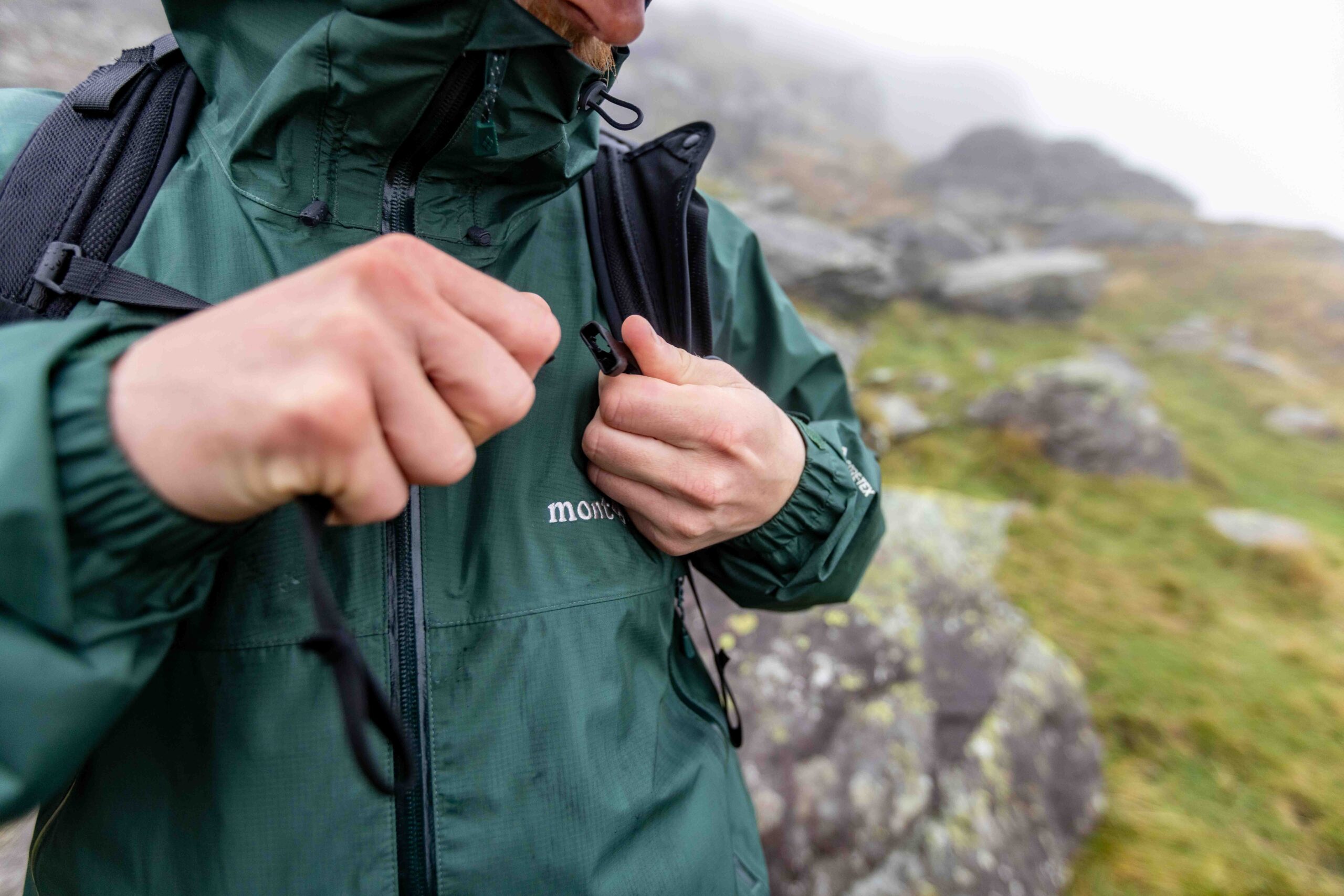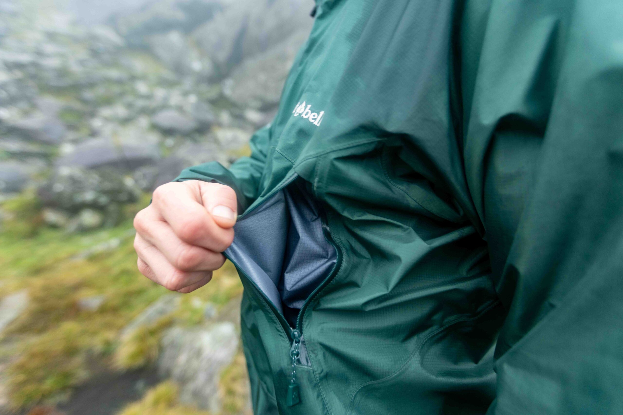 Is it waterproof? Yes. I’ve faced some pretty brutal weather in this – sideways rain and all – and it’s been very reliable. Crucially, there’s excellent adjustment at the hood, so you can really batten down the hatches, and the PU-coated zips do their job well. Montbell says the design minimises the number of seams – for instance, there are none on the shoulders – which reduces potential leak points and helps prevent chafing when wearing a backpack.