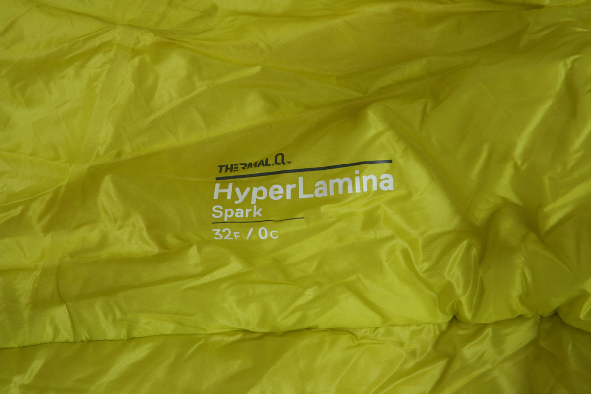 New this spring, the HyperLamina range ups the ante again. It uses the same Lamina construction and Thermal.Q synthetic fill, but with additional tweaks to up efficiency and reduce weight and bulk. In particular, the HyperLamina bags use different insulation weights in different areas for added efficiency.