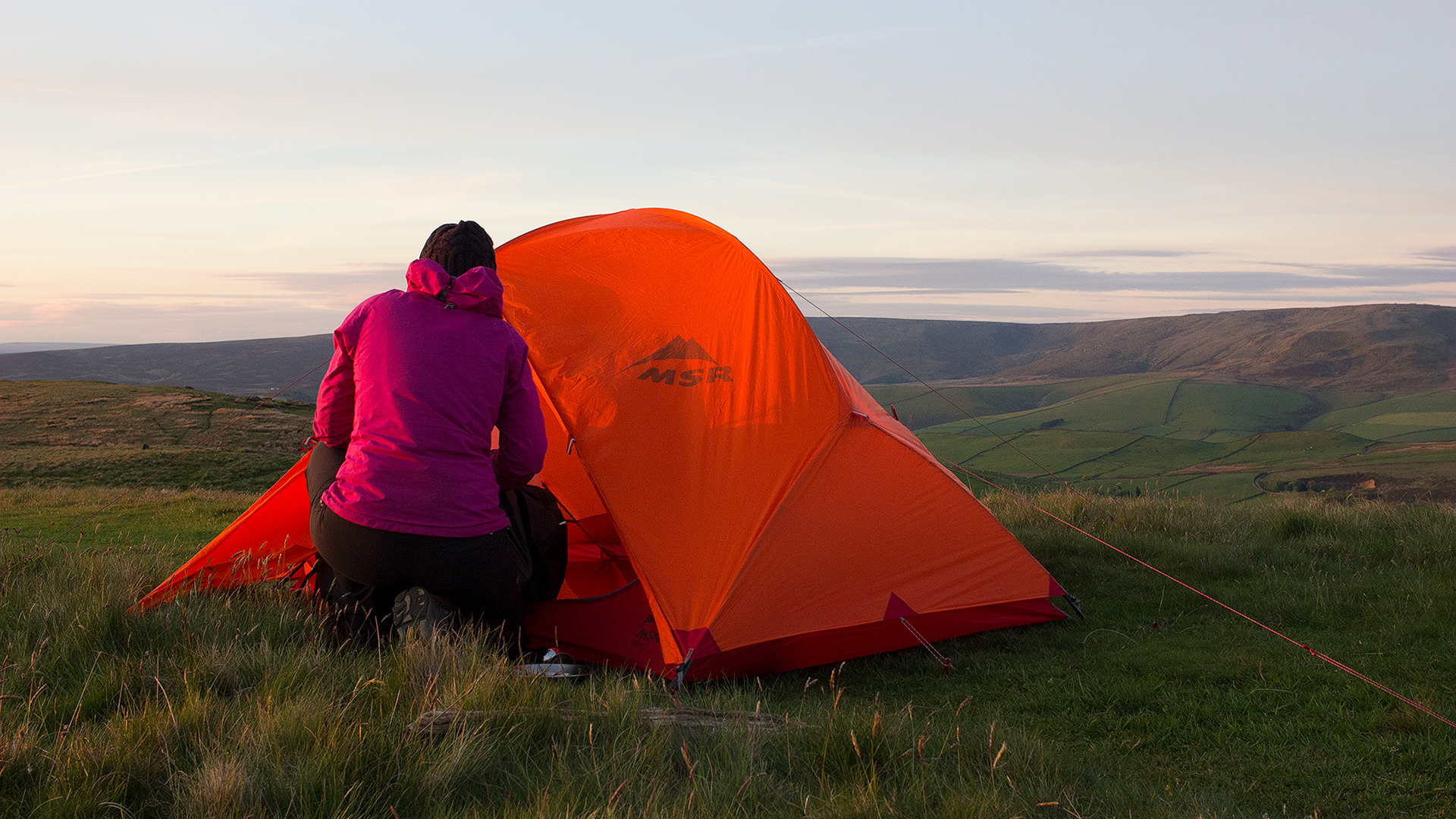 So what makes it tougher than a standard MSR lightweight backpacking tent? First the fabric has been beefed up compared to the real lightweights with a 20D flysheet fabric – though that’s the same as a Hubba Hubba. Then the inner has only two small mesh panels, one on each door, to keep the interior warm and draught free.
