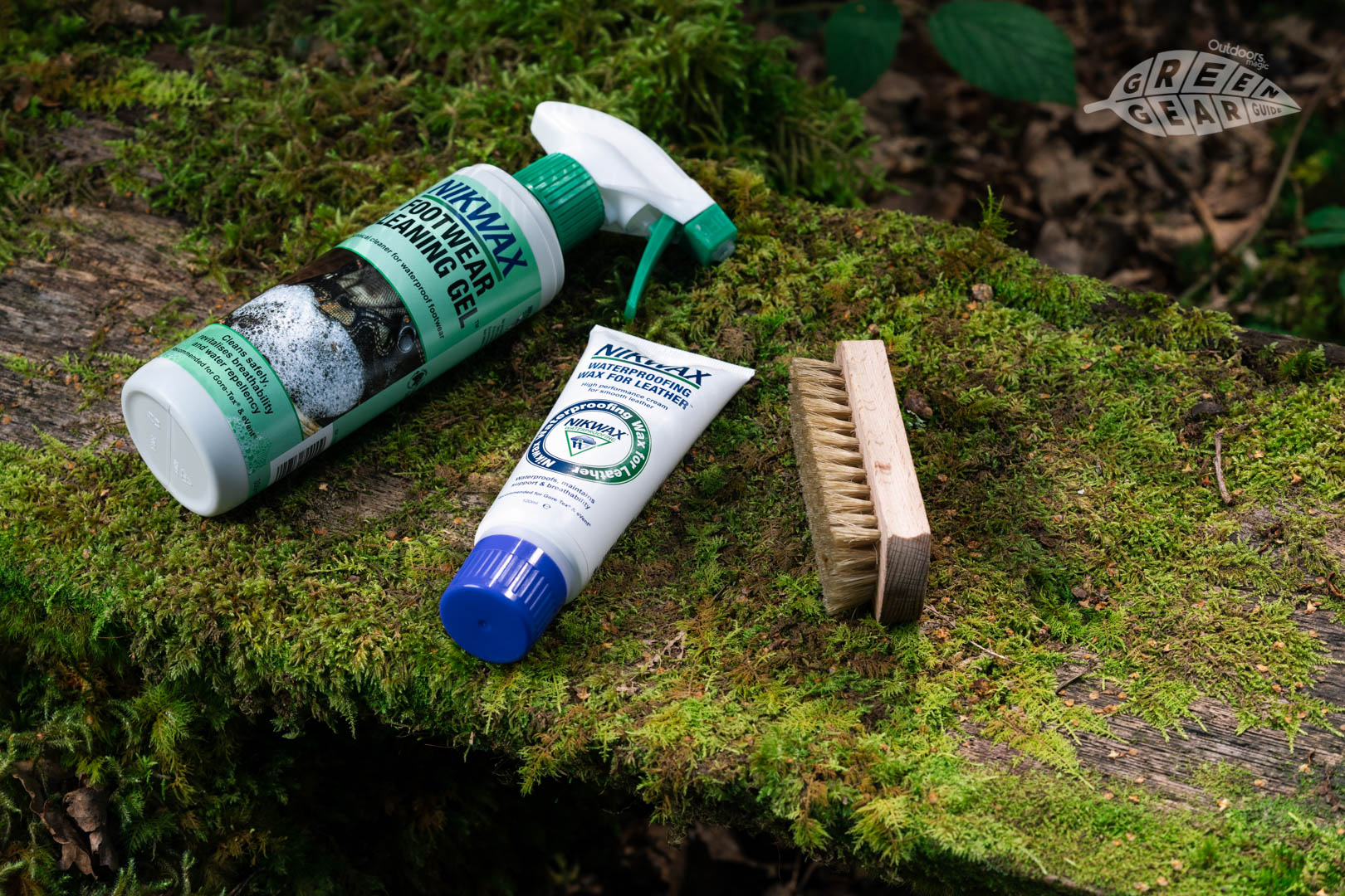 The Nikwax Footwear Care kit contains a bottle of Nikwax Cleaning Gel, Nikwax Fabric and Leather Proof and then their Waterproofing Wax for Leather. You also get a handy little brush and a rolltop drybag too.