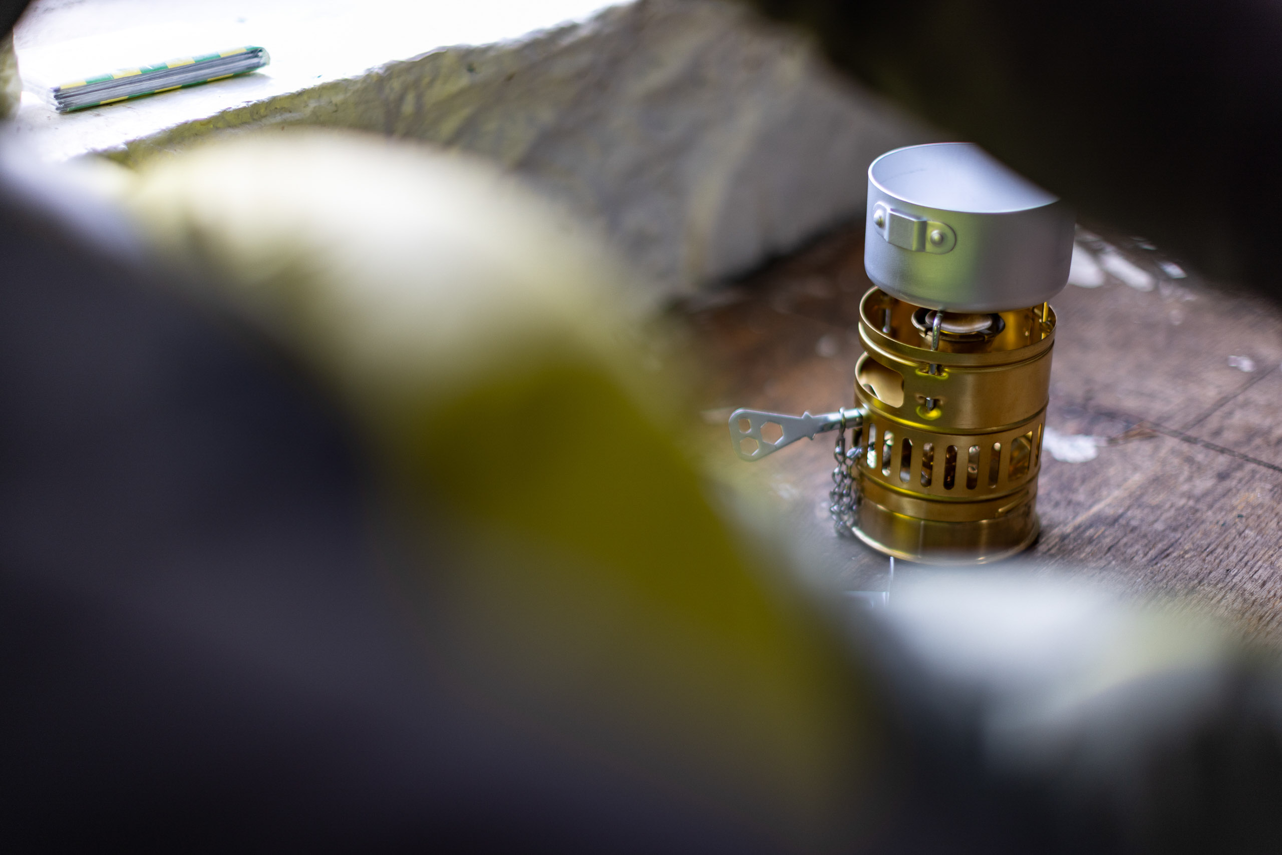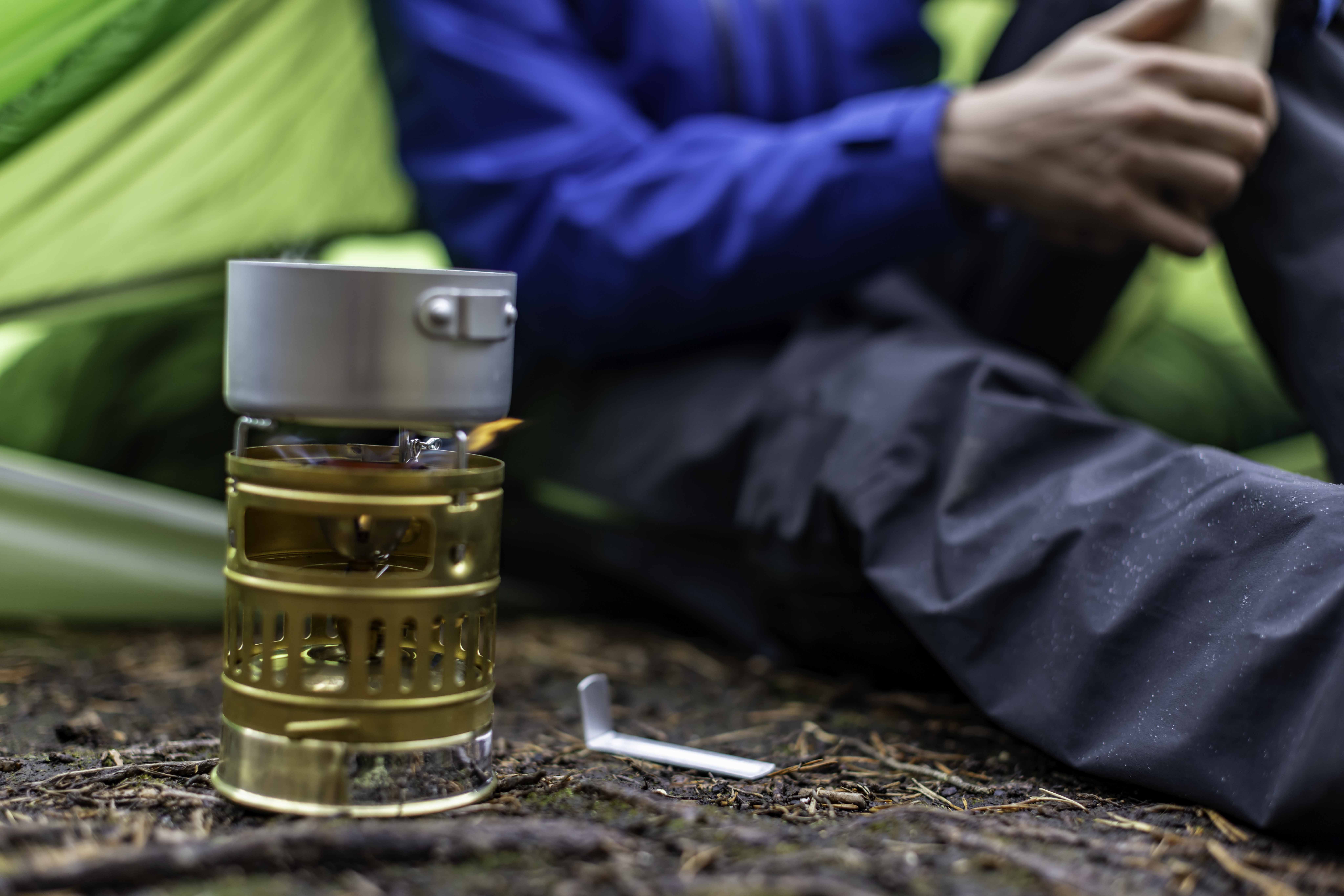 Built from solid brass and with pretty much just one moving part, the Svea’s also just about bombproof with very little that can go wrong with it. It involves a burner with a fuel tank and then a wind shield that also serves as a pot support. The pot, which is a lightweight aluminium, doubles as a lid for the stove set when it’s packed up and it comes with a little handle.