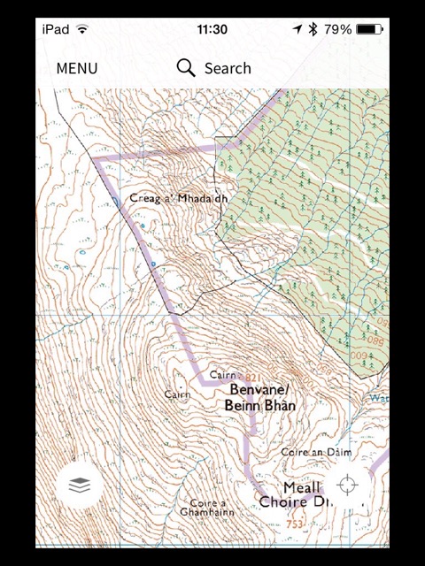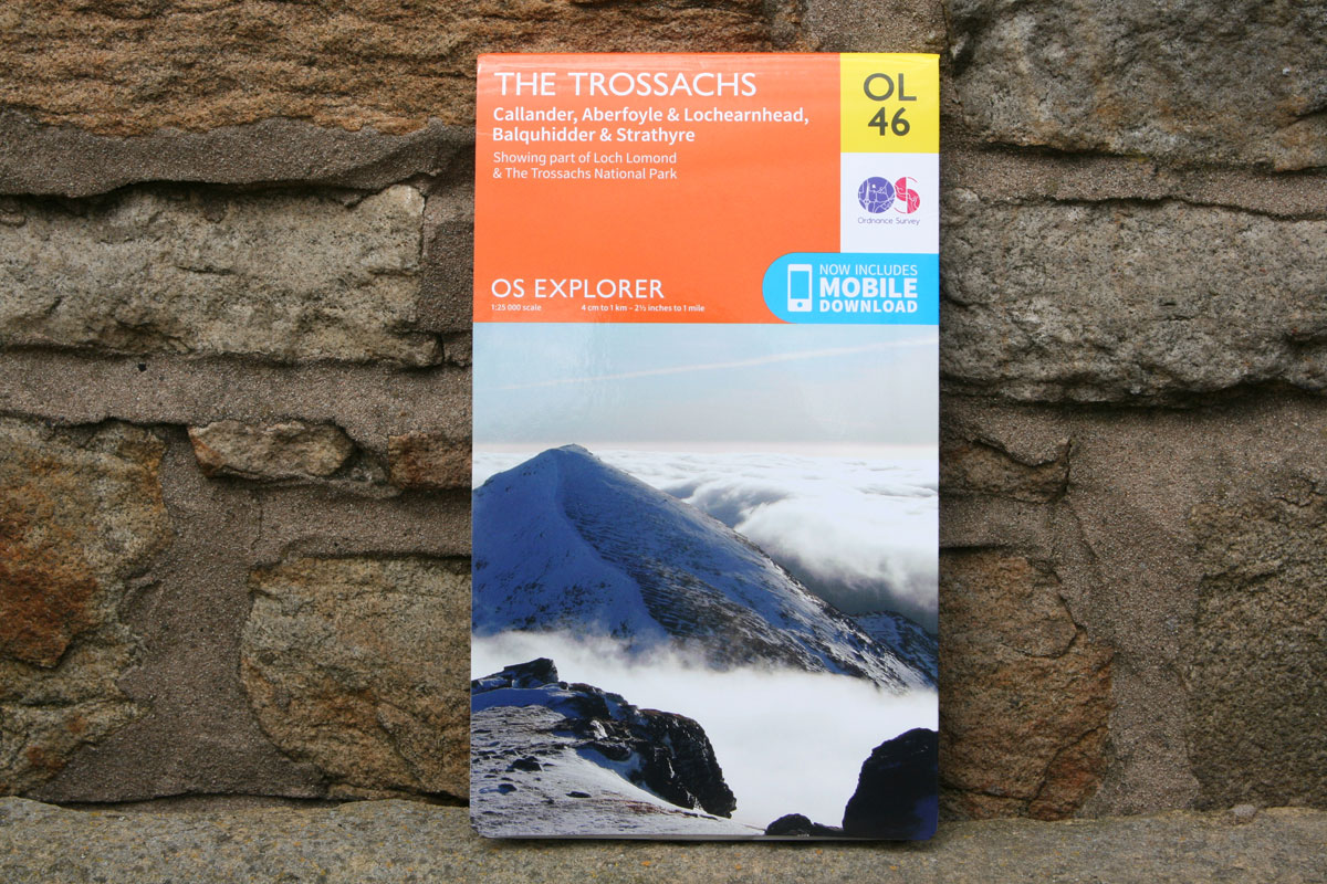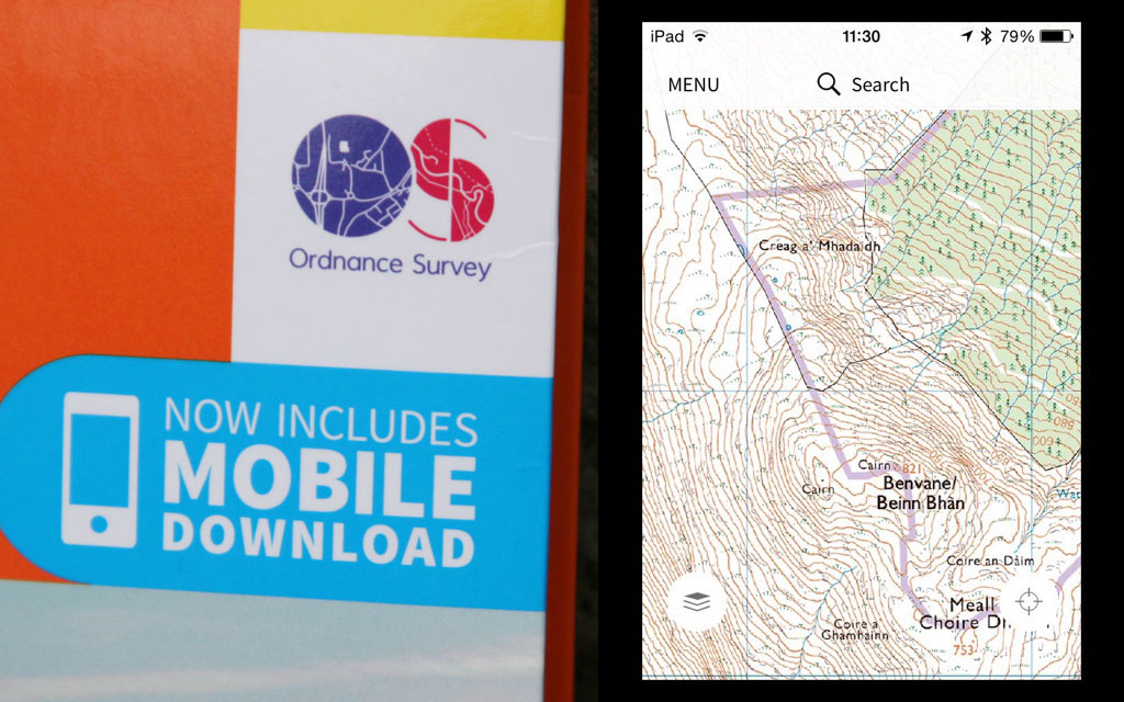 We downloaded the new OS Maps app onto an iPad Mini – note that it needs iOS 8 to run on an apple device – then created an OS Maps account and activated the free digital map subscription on a new Trossachs OS Explorer 1:25,000 sheet supplied by the guys at  Above and Beyond.