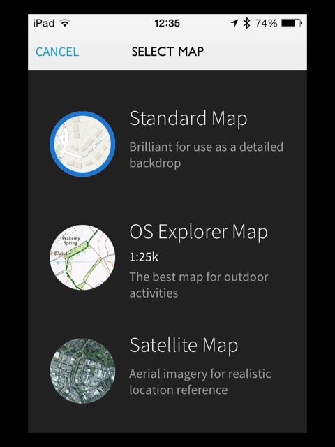 In other words it’s all quite basic as things stand. No sophisticated trip computer, tracking functionality or even access to POIs in the current form. There’s not even an integral electronic compass. Essentially it’s a nicely laid-out and easy to use map viewer which works only – as far as we can tell – with the free digital versions of Explorer Maps.