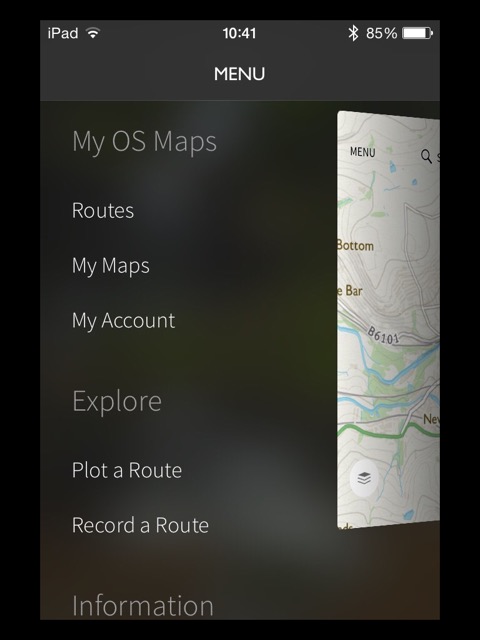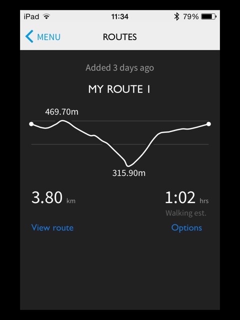 The app does more as well. Using the menu you can plan routes on the device by simply tapping to add joined-up points and you can also record a route as you go. What you can’t do yet, as far as we can tell at any rate, is to download and follow a GPX route from an external source or even create a route on the OS Maps web app – a paid-for mapping and route planning service giving access to OS mapping and routes.
