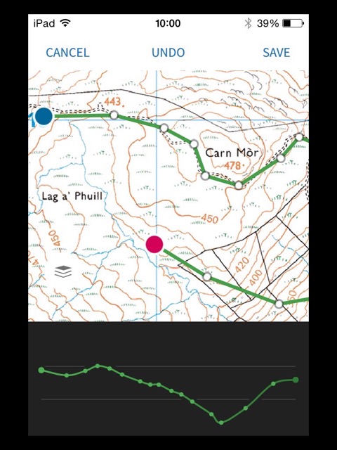 Route planning allows simple plotting, just join a series of apps. The lower graphical line shows the elevation profile as you go.