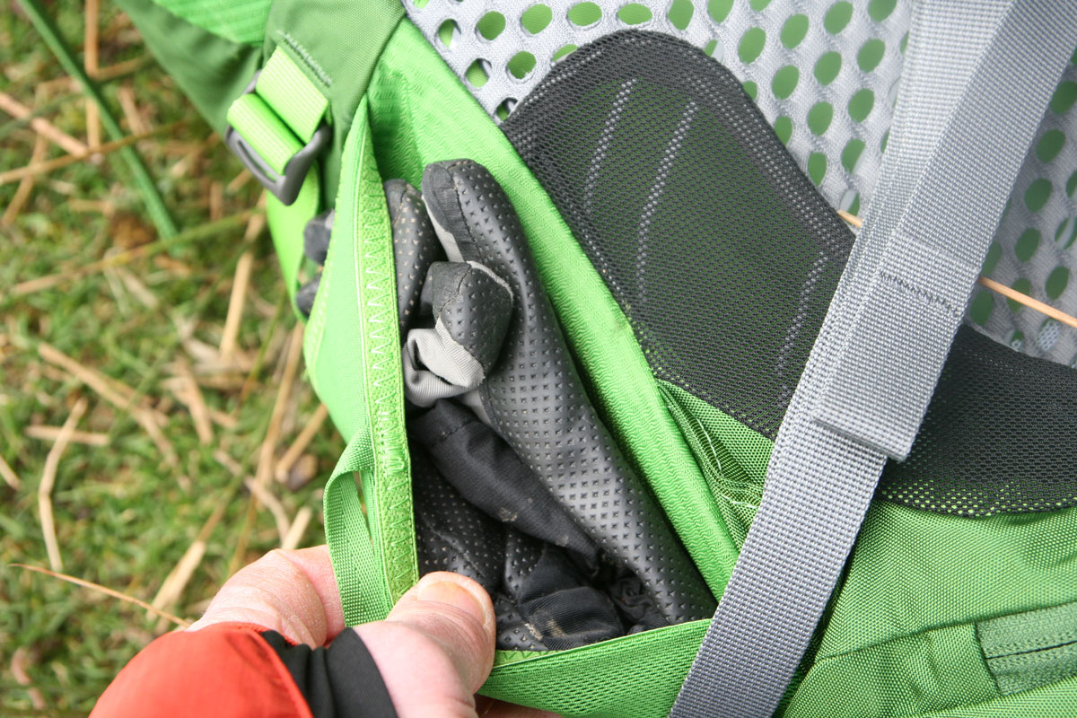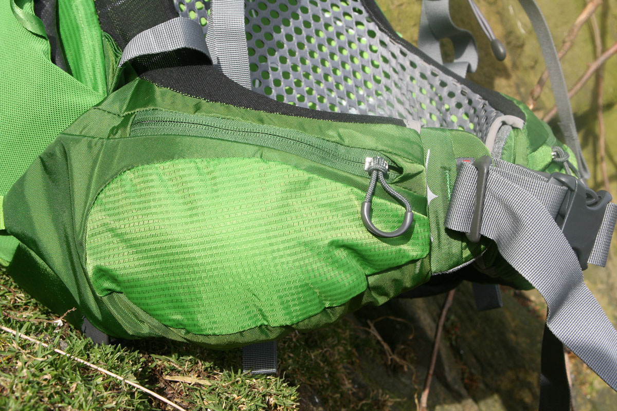 So what about the rest of the pack? In short, classic Osprey with a relentless attention to detail. There are pockets everywhere including stash ones at the sides shaped to allow you to reach them without removing the pack, there’s a bottom access zip allowing you to get to the base of the pack easily plus Osprey’s own pole carrying system and axe loops too.