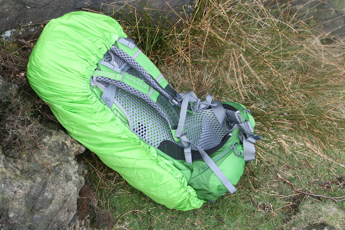The rain cover sits in the top pocket of the lid and can be deployed in seconds with an adjustable elastic closure covering the bulk of the pack though not the harness. It does struggle a little with the integrated hip-belt design since there’s no defined border between pack and belt so you need to tension it up thoroughly.