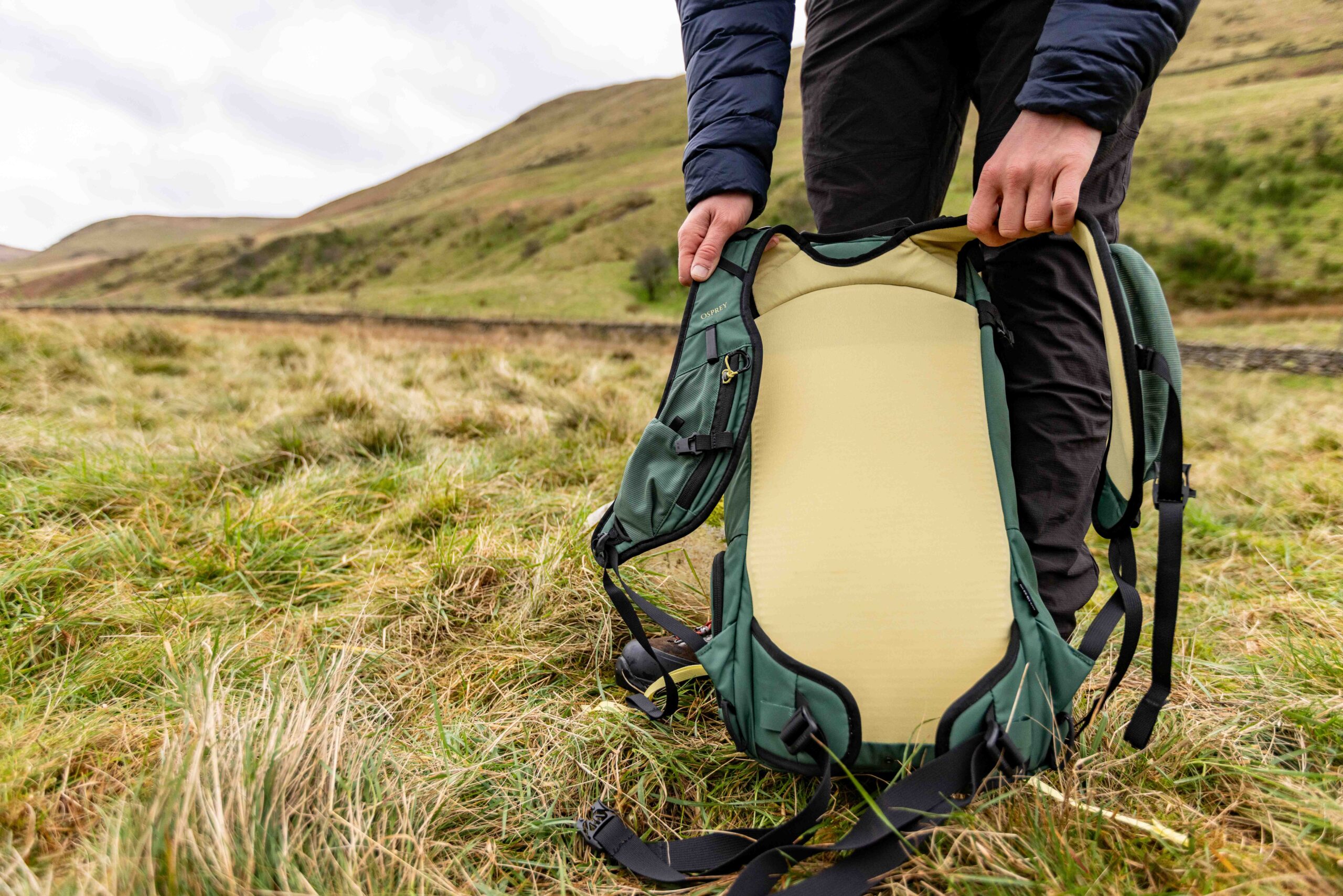 Will using the pack for a hike in the Lake District. The yellow tabs can be tucked away when not needed.