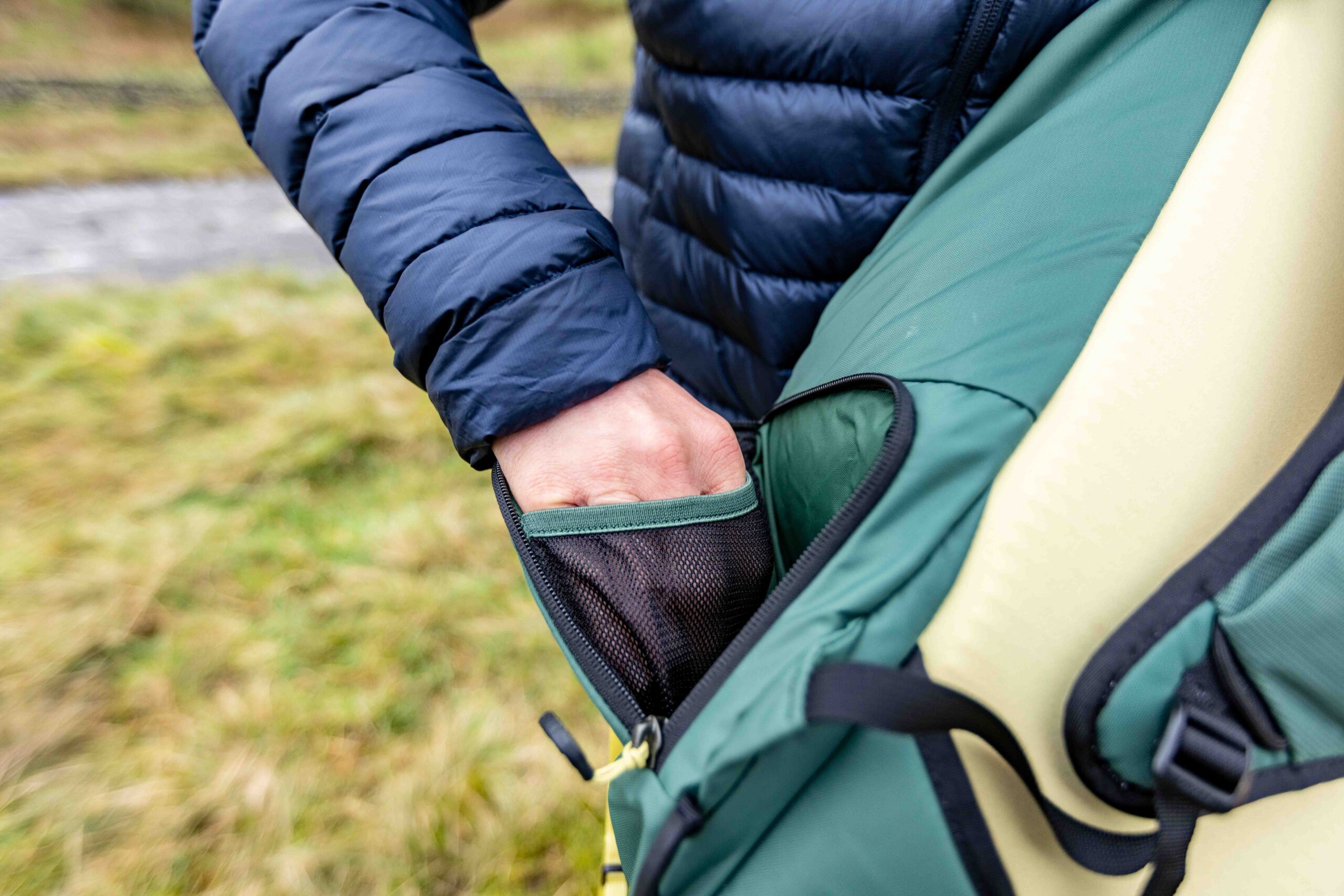 The rain and snow resistance is very good, but in exceptionally prolonged wet spells the pack can eventually saturate in my experience. This means that in poor conditions you’ll want to either use a rain cover (not included) with it, or drybags.