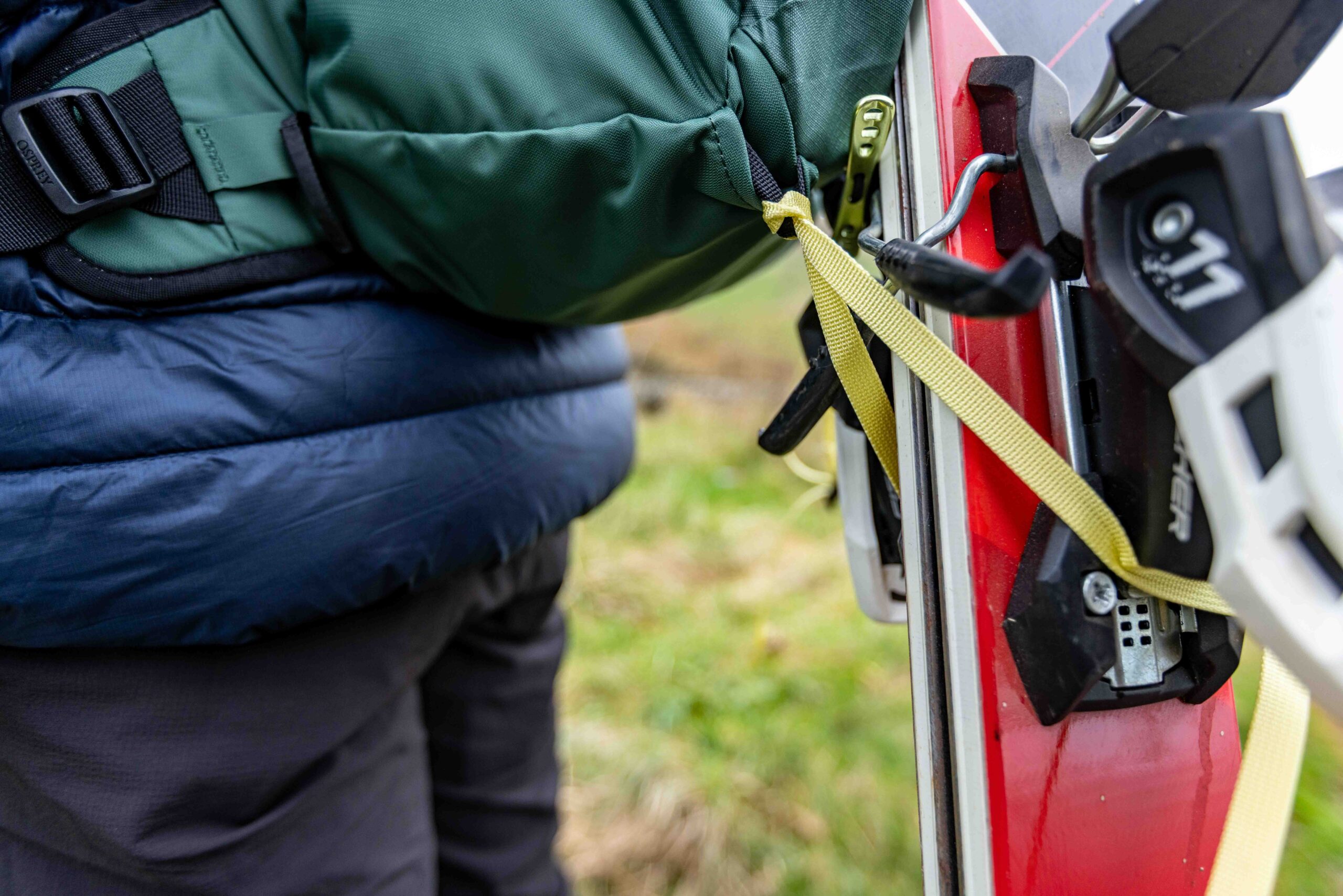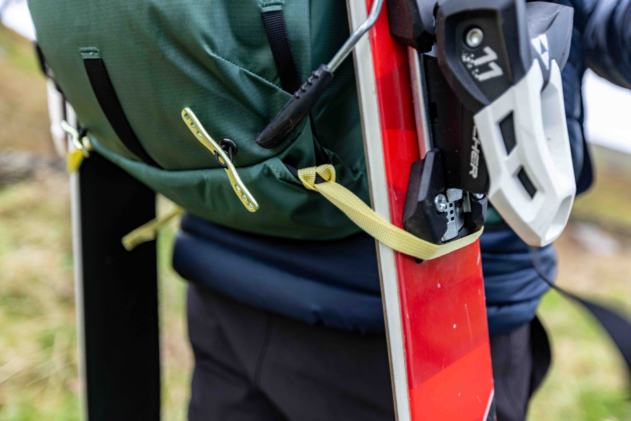 Like Tristan, I agree that the ski-lasso does take some getting used to, but once you’ve figured out the move you need to pull with it, it’s simple and very effective. It keeps skis remarkably well balanced and reliably held on the pack too.