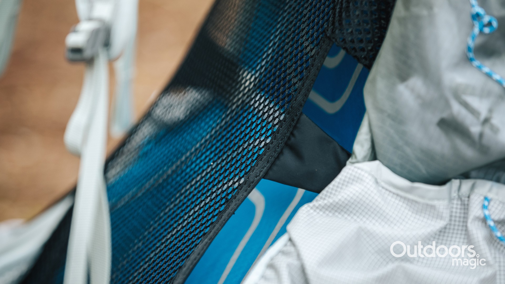 Yes, we’ve all seen ultralight packs before, but none that have a back system like this one. It features Osprey’s AirSpeed system, seen on many of their packs, where the bulk of it is suspended about 3 inches off your back by an aluminium frame and trampoline-like mesh to allow a high amount of ventilation and less sweat build up. We’ve found it works great on Osprey’s other packs and it certainly works on this too.
