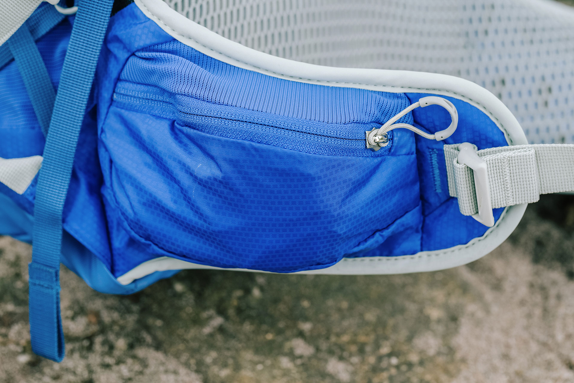 Inside the hipbelt, you’ll find two perfectly placed pockets for snacks, pocket camera or GPS. On the front of the pack, there’s a large mesh pocket to store wet gear, such as waterproofs, or an extra layer that is easily accessible on the move. Hydration is also key, whether you are biking, trekking or climbing.
