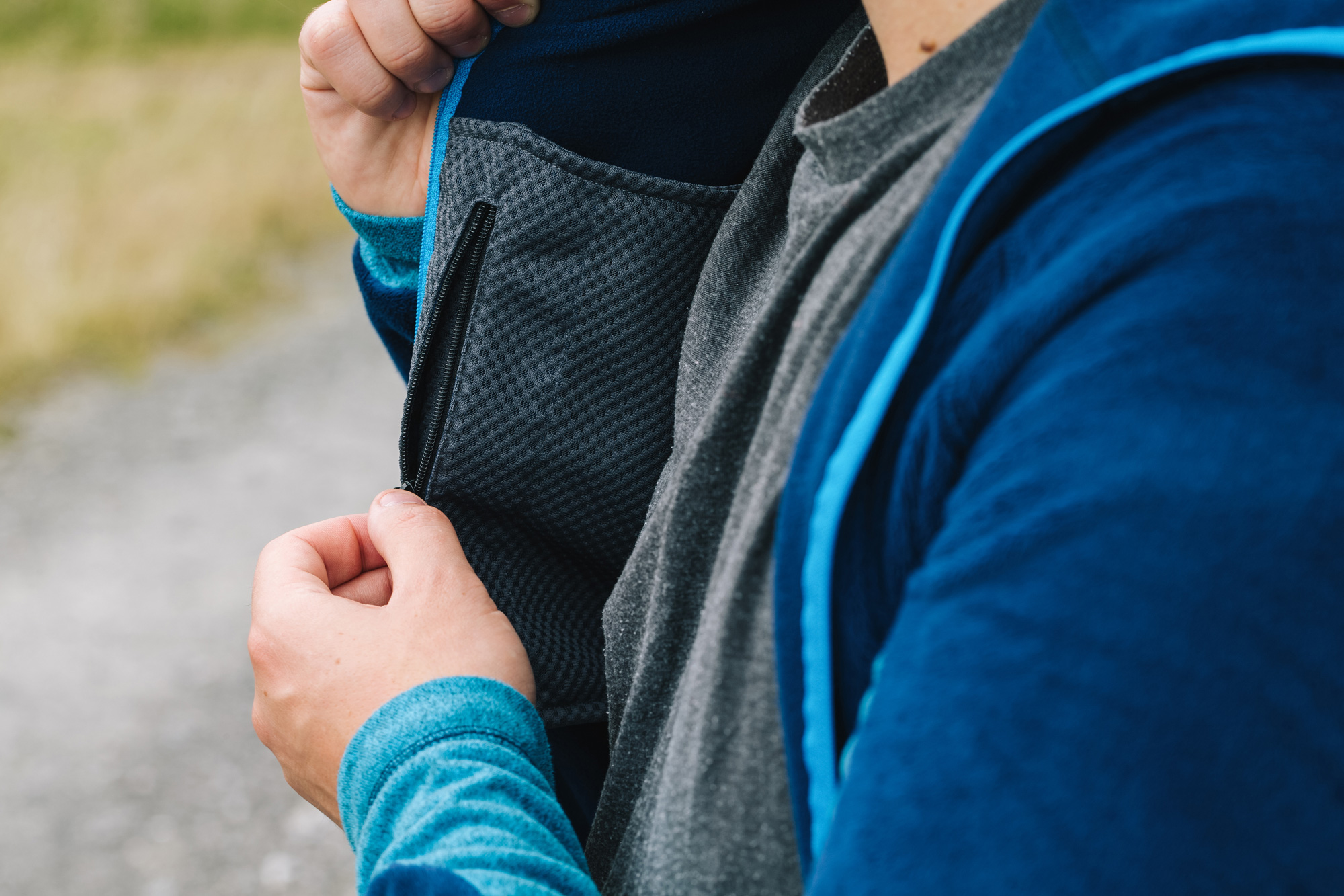 Take the highly practical five pockets present here, all of which are lined with mesh Pump Liner and have been designed to help move moisture away from places you don’t want moisture to be. And what about the thoughtful, off-centre, placement of the zip which reduces discomfort around the mouth when zipped up. It might make the fleece look like a slightly wacky Picasso-esque creation but there’s a method in the madness, make no mistake.