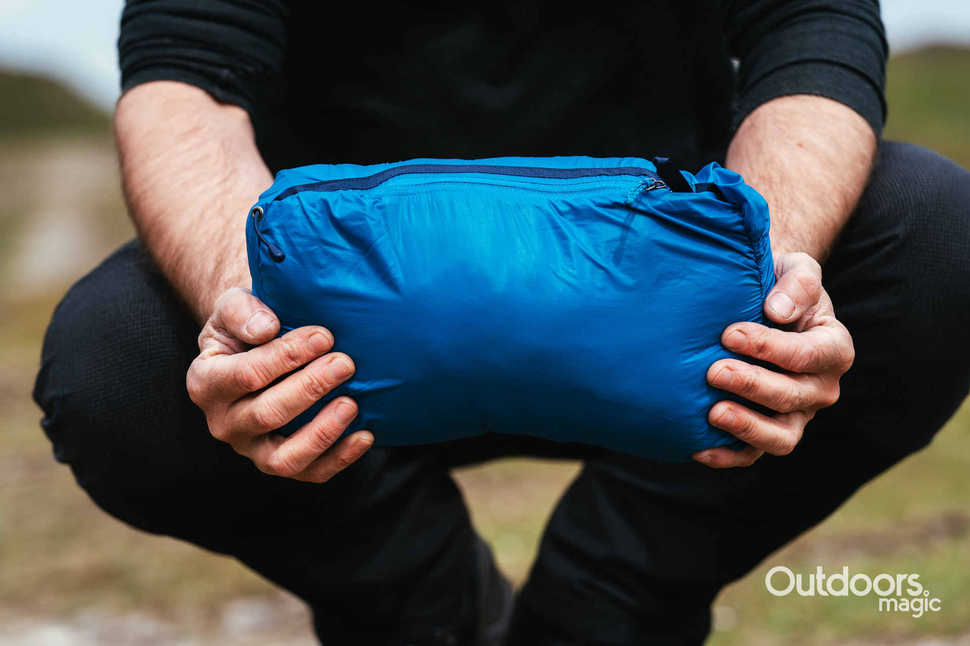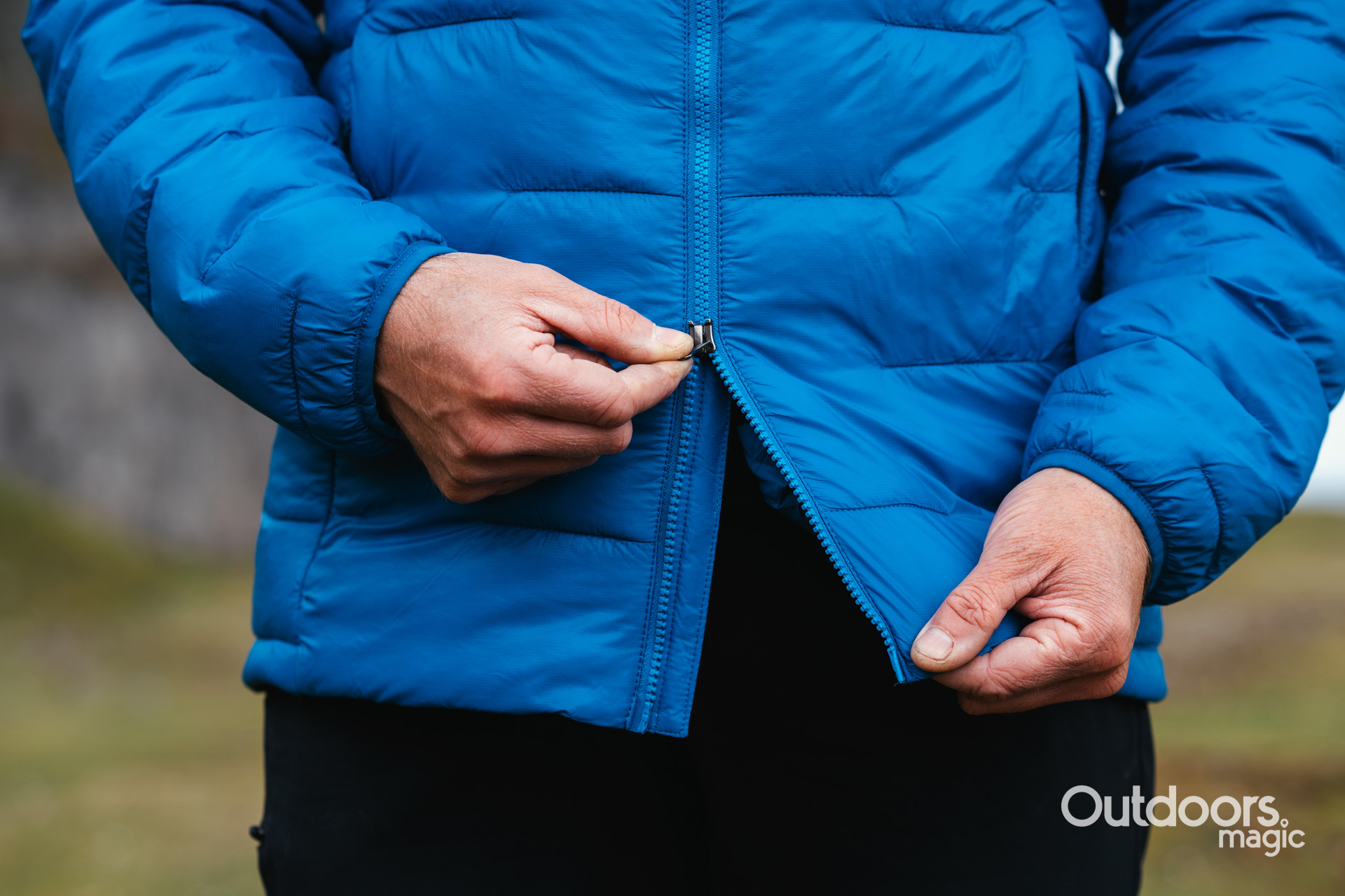 It’s not just the higher overall density of the fill that makes the Macro heavier than the Micro, it’s the cut of the jacket as well. It’s much longer, coming down to cover the handwarmer pockets on your trousers and dropping down to cover your backside, and you can cinch it in using the drawcords in the handwarmer pockets.