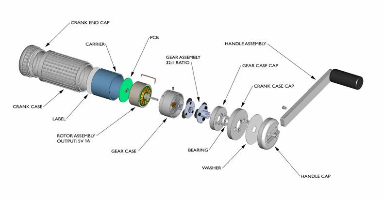 Visually the Crankmonkey resembles a Powermonkey Extreme with a handle on it.