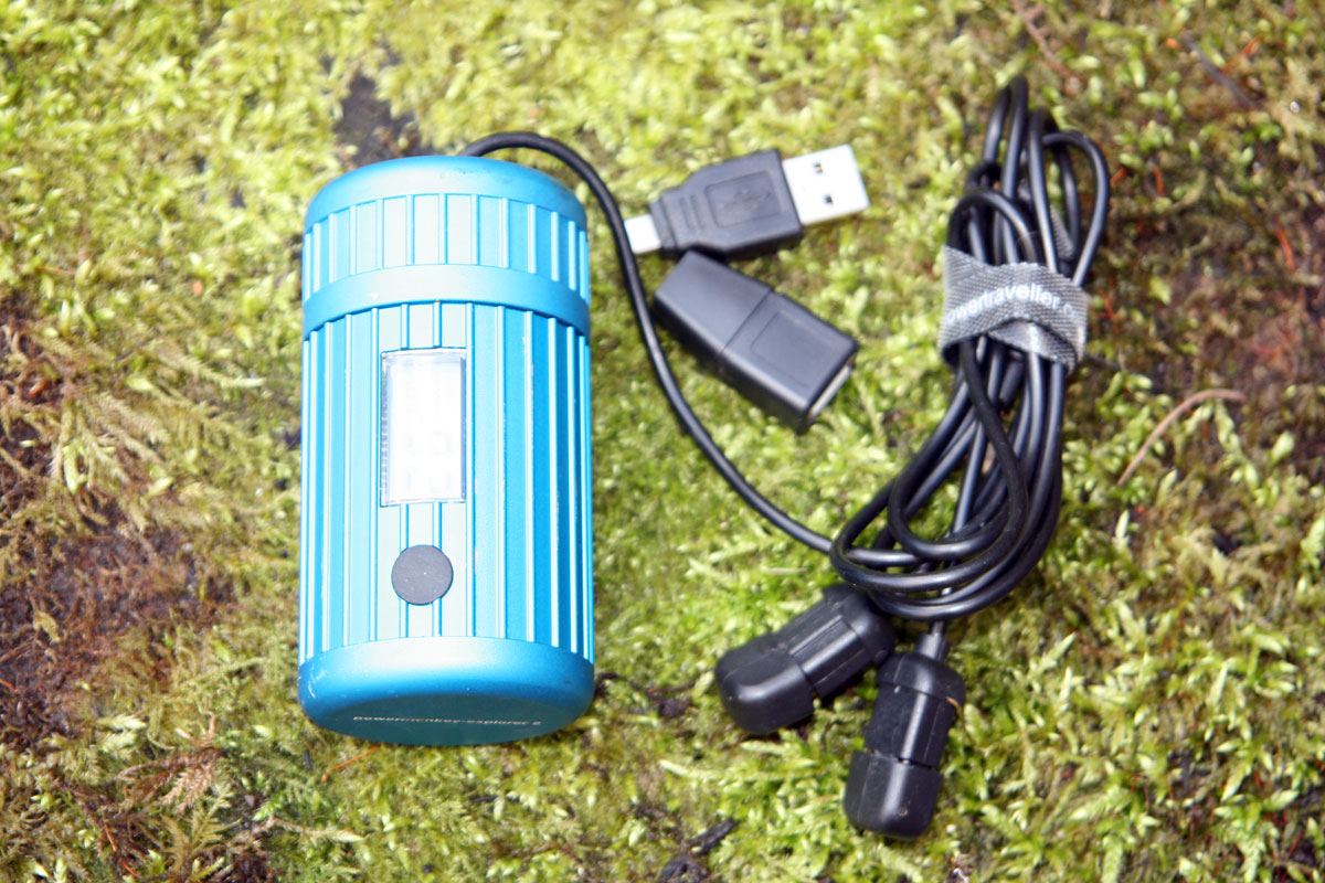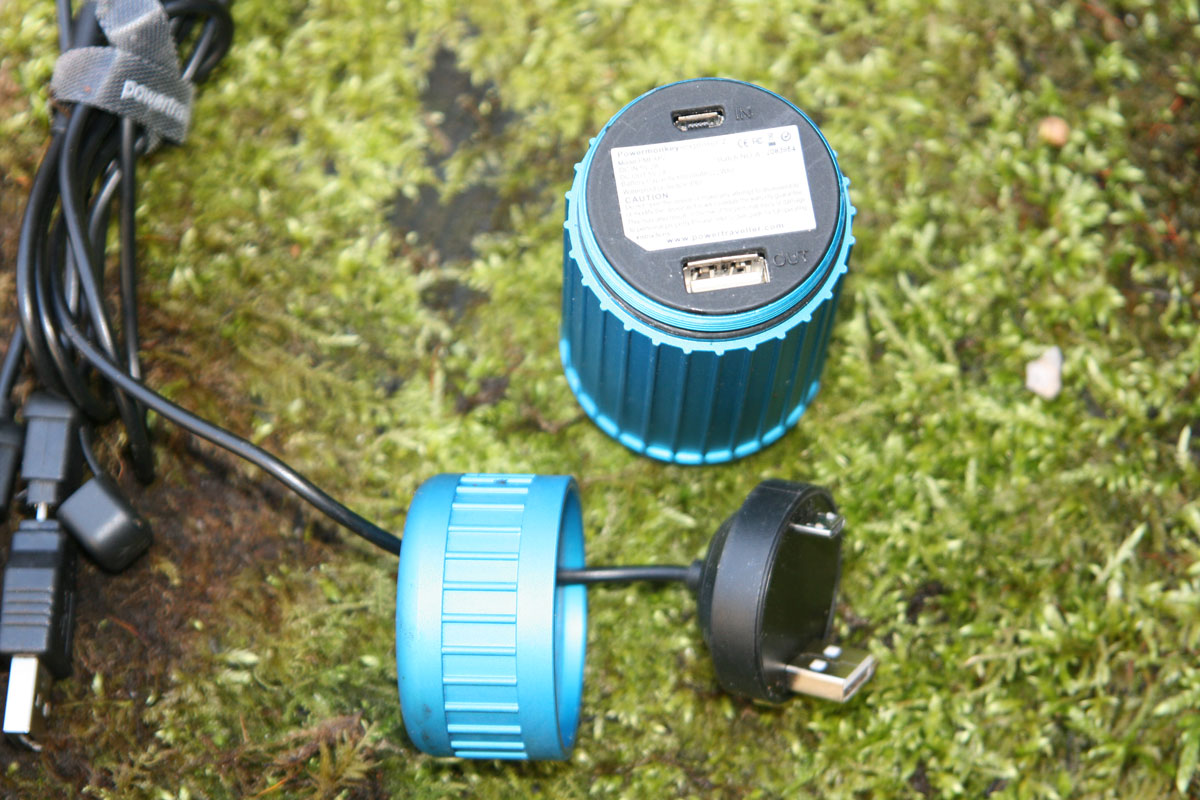 If you want to keep the battery waterproof – and it worked for us with the body completely submerged in a basin of water – you have to use those leads, but on drier days, you can simply unscrew the top of the charger to expose USB out and Micro-USB in sockets and save 102g in the process, reducing weight to just 200g and getting rid of the messy wiring.
