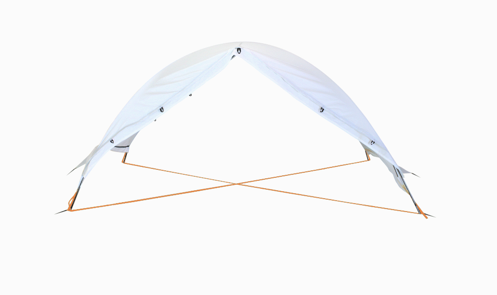 Firstly, it’s the impressive eco credentials. The tent is made from 125 recycled plastic bottles, which are transformed into small plastic beads, spun into the thread and finally woven and sewn into the fabric. No polluting textile dyes are used to colour this fabric either (as seen elsewhere in the Mountain Hardwear Lamina Eco AF sleeping bag, for example), so the tent is a plain white colour. This undyed approach gives the tent its name, in honour of the endangered white beluga whale. A final eco innovation is the use of an ‘ecological type of anodisation using an alkaline solution instead of dangerous chemical products’ applied to the aluminium tent poles, a process which uses less water and energy and produces less toxic fumes.