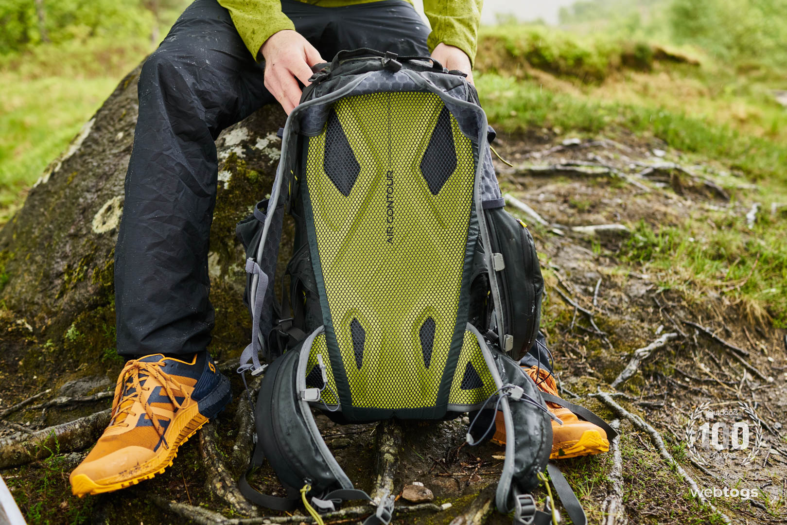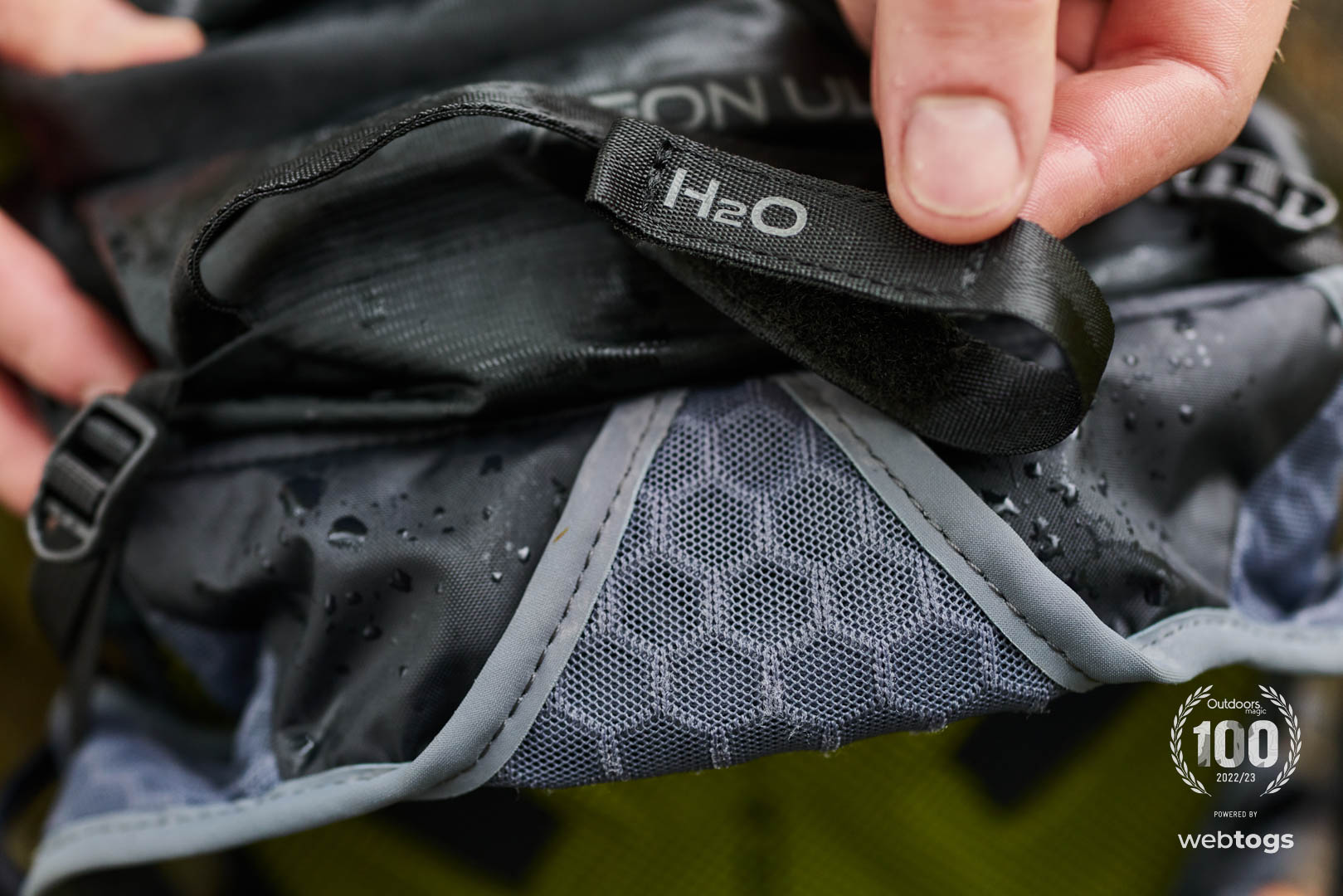 A highly water-resistant main body is always going to help when it comes to fastpacking through mountains and the Aeon Ultra achieves this with 50% recycled nylon that’s tough enough to cope with challenging weather and repeated rock abrasion. The main compartment is also fully taped, giving enhanced water resistance, while its roll top closure can either be secured to the side, or can be secured above to maximise capacity.
