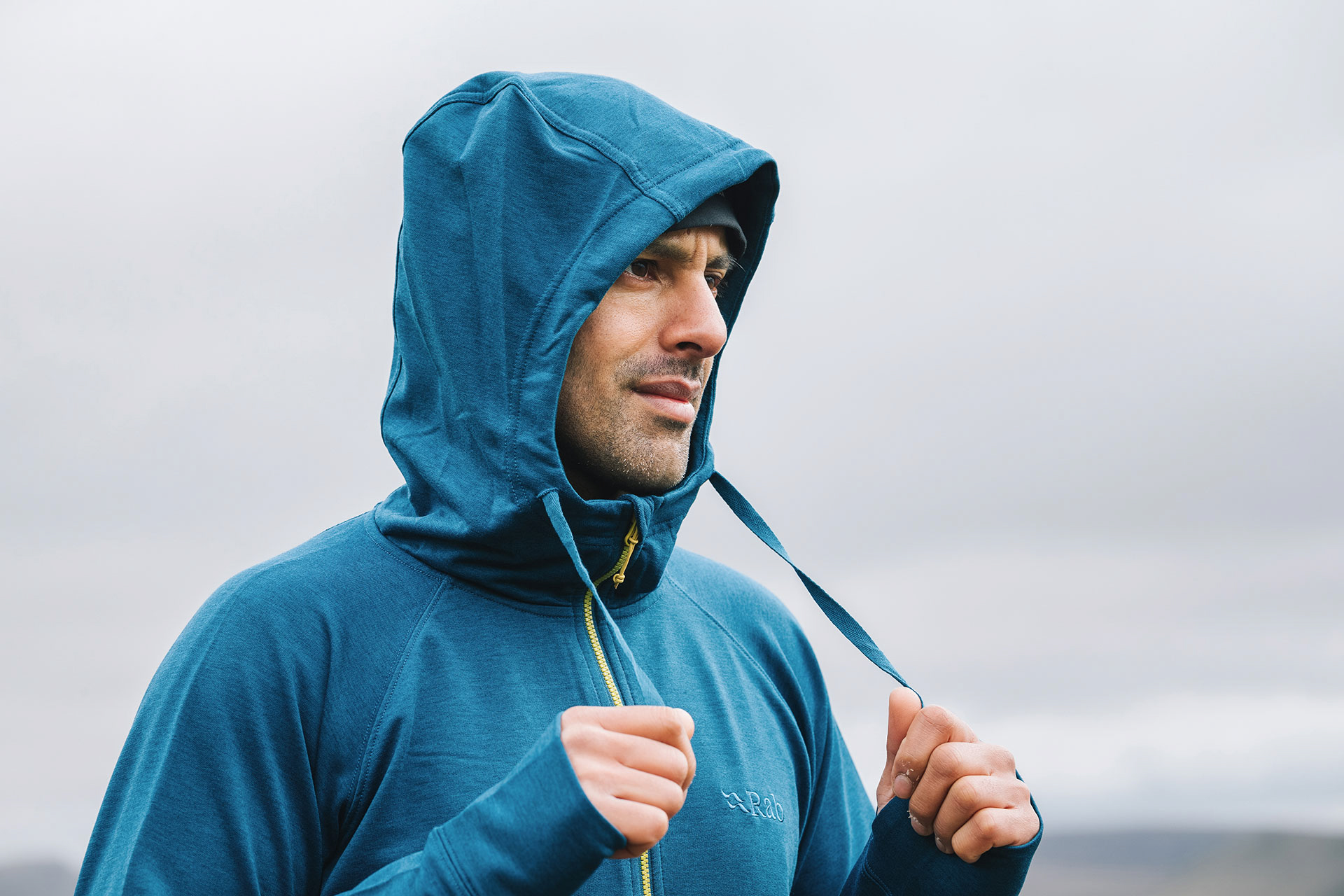 When it comes to making outdoor wear that’s fit for purpose, Sheffield-based brand Rab really don’t mess about. Their logo is a signifier of class and a reassuring presence – like a Sheriff’s star of quality – on any bit of kit you see it on. We’re happy to report that the Top-Out Hoody, with its Rab logo proudly on display, is yet another winner from them.