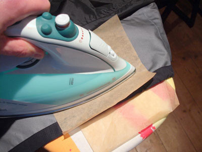 The method I’ve used for more than ten years, and have passed on to many other people who have also used it successfully, is to use iron-on seam seal tape. This is very similar to the seam seal tape used by manufacturers when making waterproof clothing. The advantages of it over other methods are are that is cheap, relatively easy to apply, seals the edges of the cut, and seems to last well.