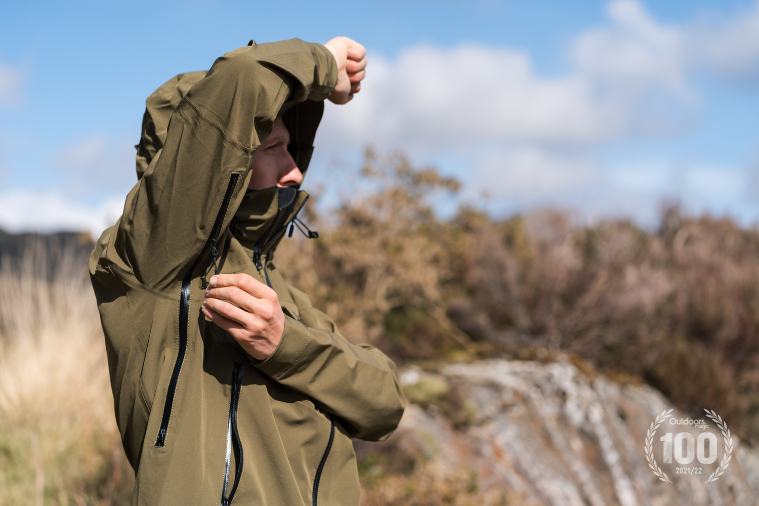 This is a waterproof jacket designed with multiple functions in mind. Its hood is helmet compatible, a nod to climbers, mountain bikers, skiers and winter walkers, while the arm features a pocket neatly sized for a ski pass.