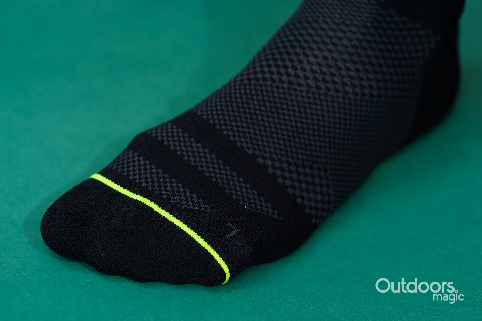 One of the coolest things about the Rockay Razer is that it’s made from 100% recycled materials. For those keeping score, the sock consists of 51% Econyl Regenerated Nylon, 45% Recycled Polyamide, and 4% Recycled Elastane.