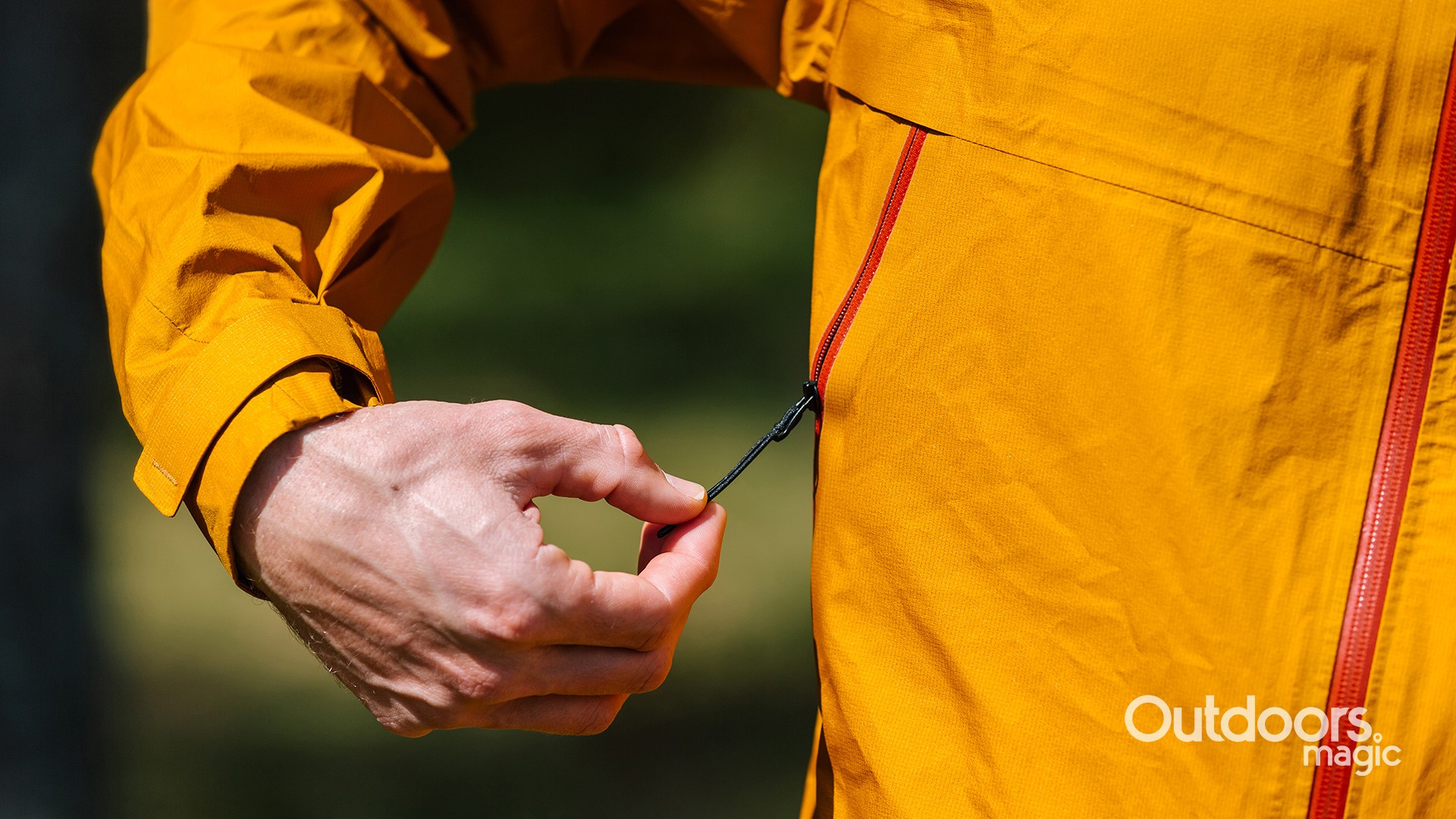 We found the hood to be especially effective against driving rain. With one pull, it cinches in comfortably around the head while the wired peak (a vital feature often lost when trying to cut down weight) allows you to angle it against the rain. There’s also an adjustable hem and cuffs.