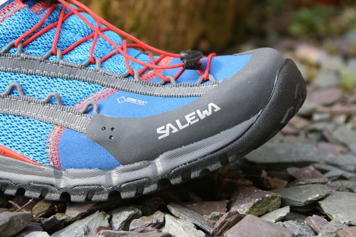 When we first saw the shoes, Salewa UK’s Ben Malcolm told us that they were designed to feel best on steep terrain and our initial try seems to bear that out. That said, a lot of steep UK hill and mountain paths are actually stepped rather than a constant road-type gradient, so they may not be directly comparable. They should though, be good for steep grassy slopes and hardpack trails that would normally force you onto your toes.