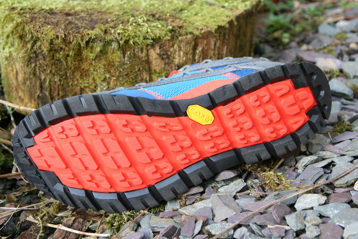 The Speed Ascent is designed for fast walking on steep alpine terrain and the sole unit was developed with Vibram. Called Rolling Gait System, the idea is that the aggressive curve to the sole helps you roll forward, a bit like the rocket on some stiffened mountaineering boots, while the, erm, Take Off Technology toe gives you optimum toe-off.