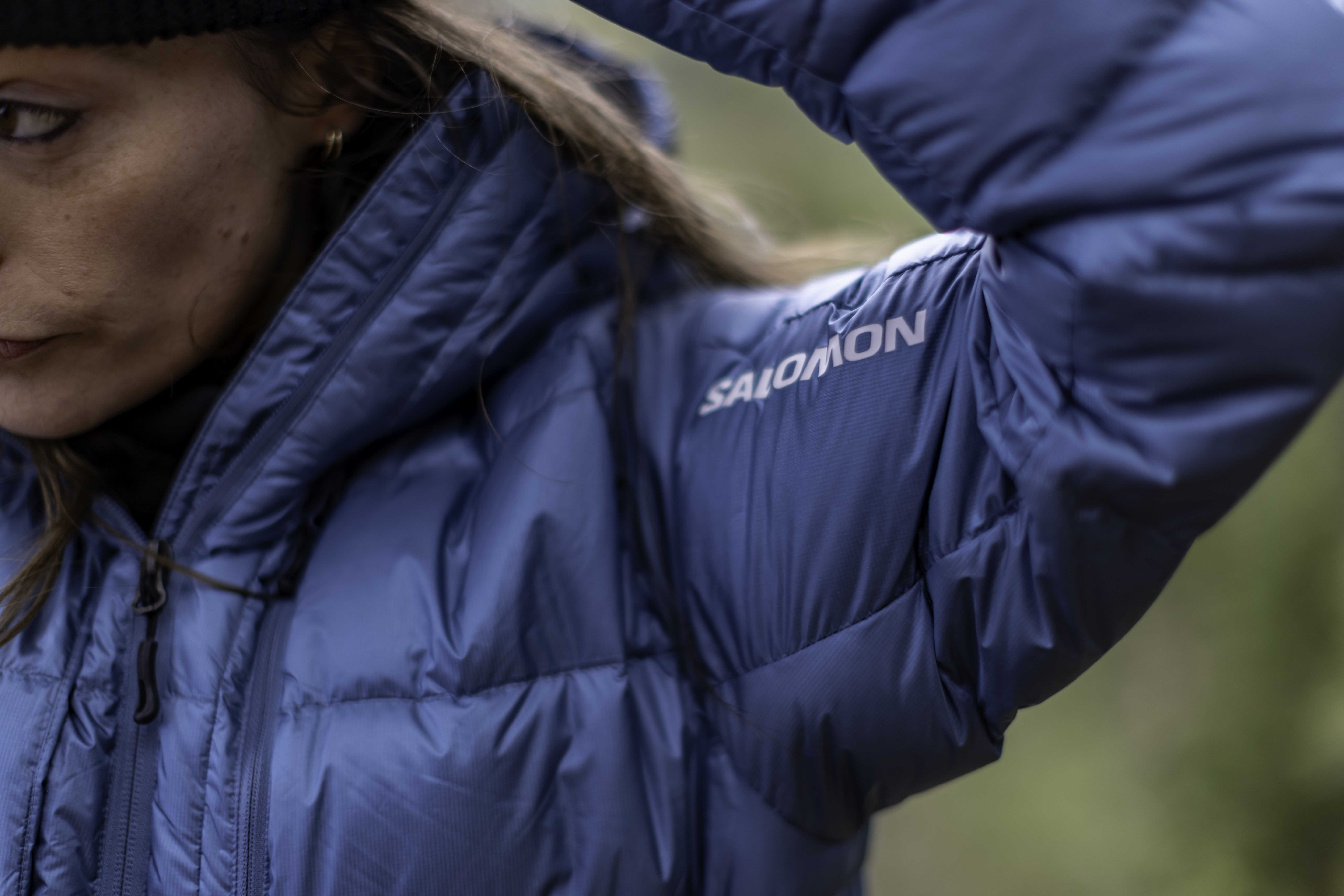 One interesting thing about this jacket is that it has a reflective lining designed to reflect heat back to your body. Salomon explained to us that this is a vapour-deposited metallic coating that’s directly applied to the fabric. We’ve seen linings in jackets before – including the Rab Mythic Ultra and Columbia’s Omni-Heat range – but we’ve not seen them applied in this way.