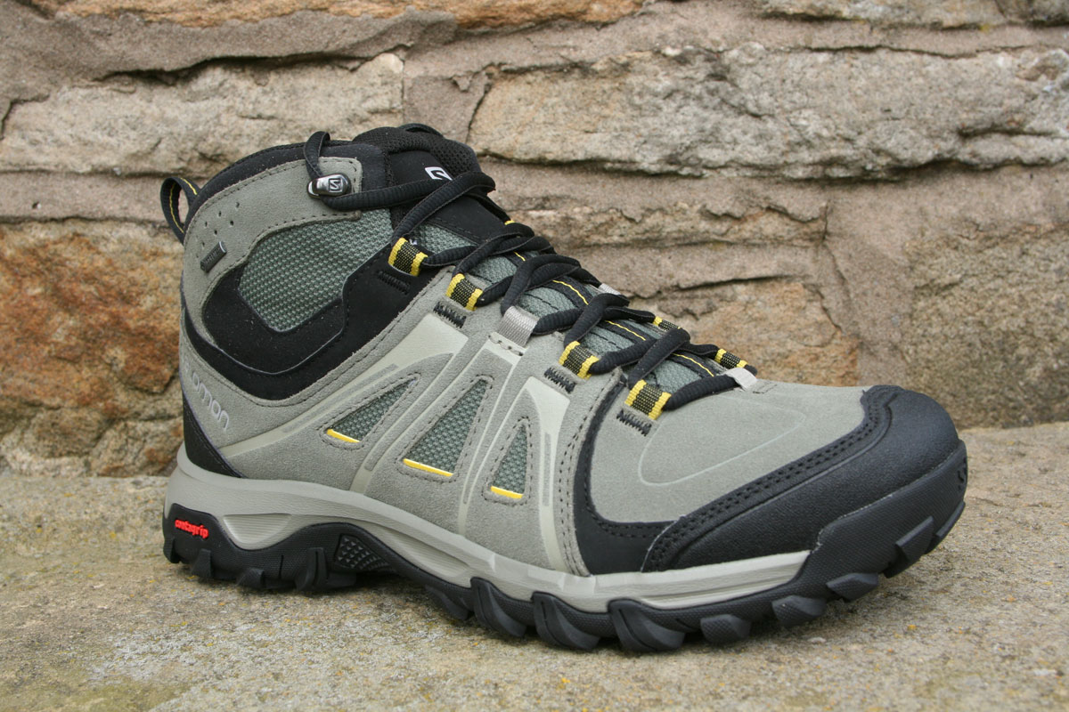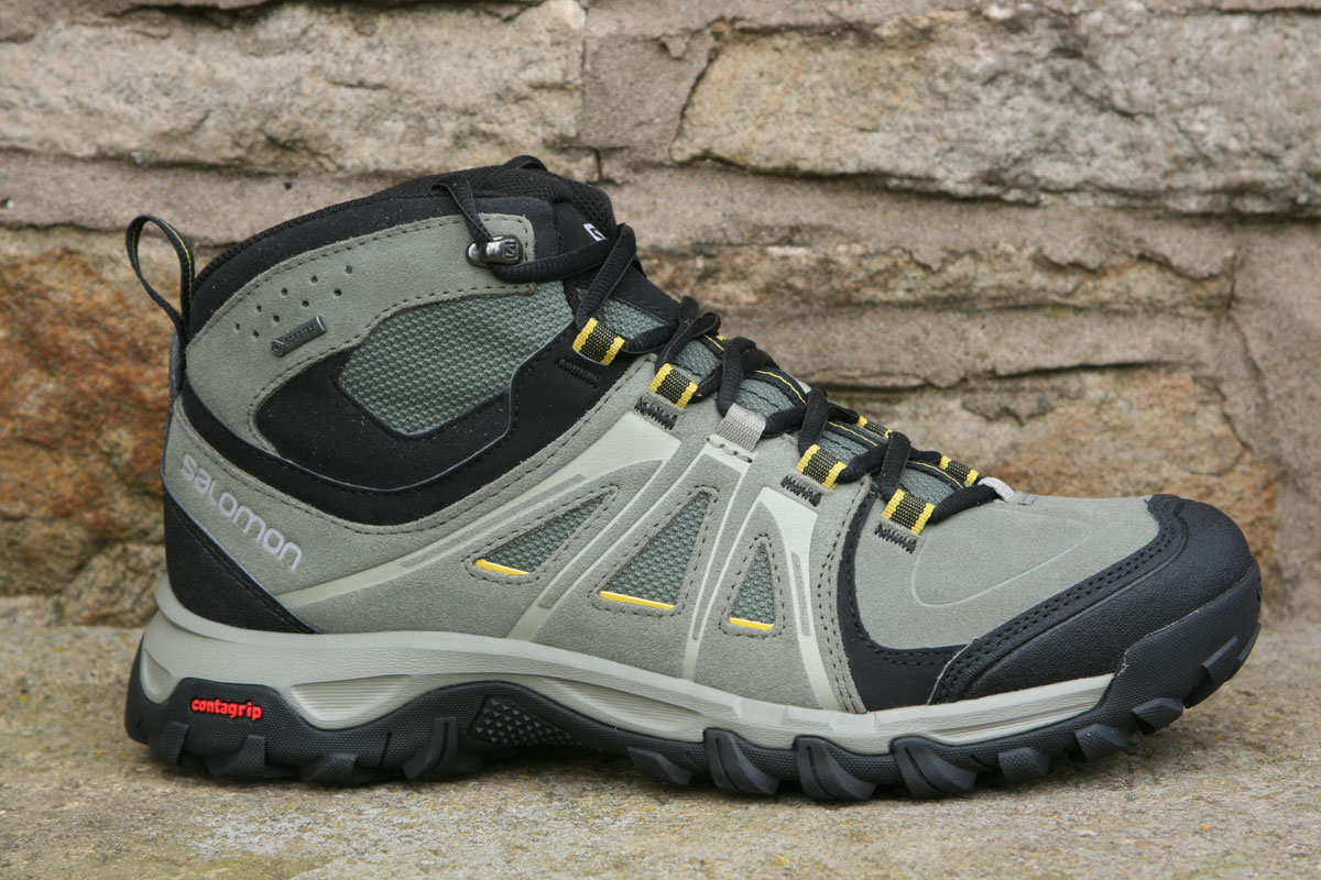 Salomon’s Evasion Mid GTX is new for autumn 2015 and part of the French brand’s ‘hiking’ line-up, which means it’s cut lower in the ankle than the brand’s ‘backpacking’ boots like the Cosmic, Quest and Comet, but at first take is still decently sturdy and supportive.