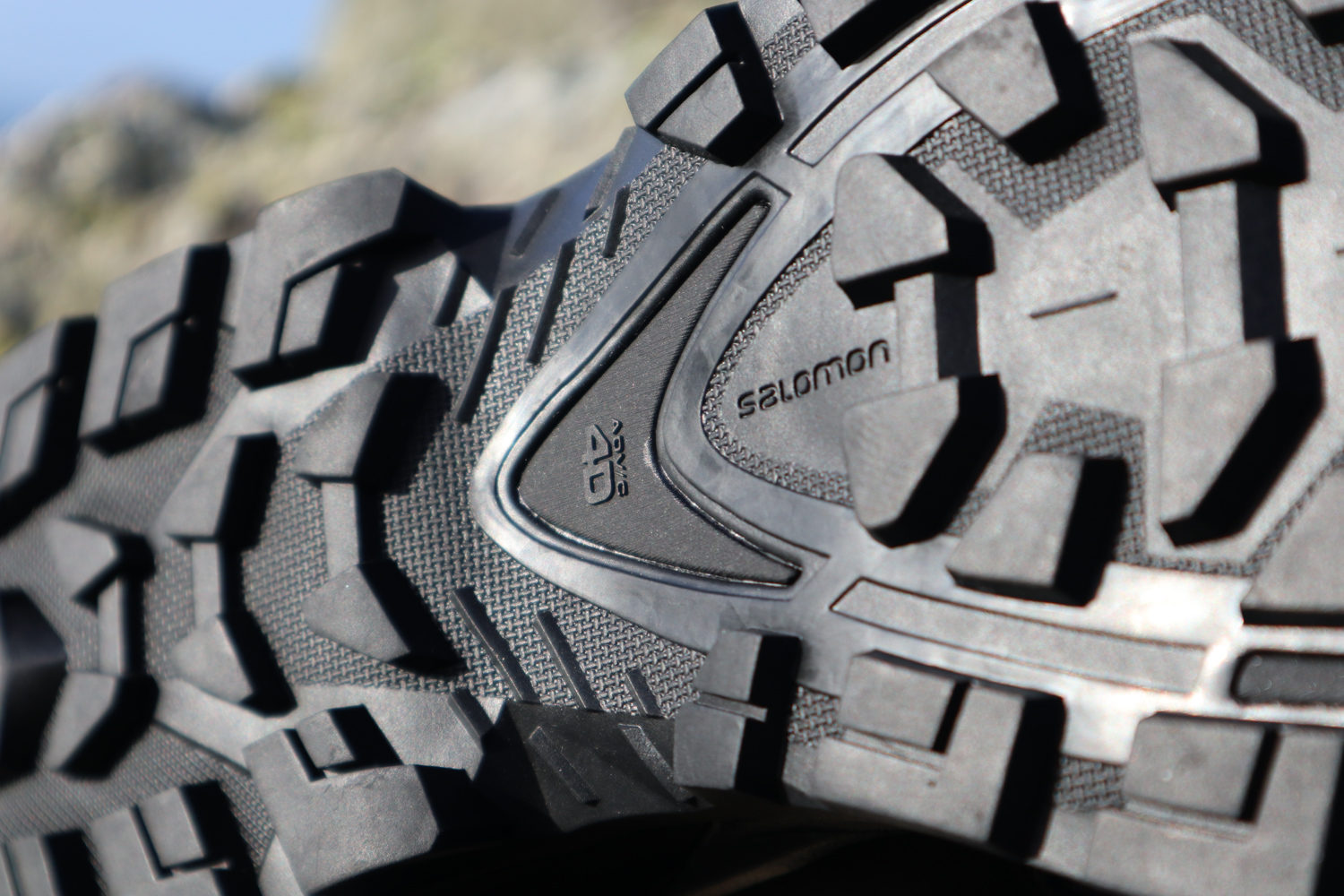 The outsole features the kind of lugs you’d want to have on a boot for tough terrain, particularly the muddy stuff we get in the UK, and there’s also a decent heel brake for that extra reliability on the downhill. Salomon have used their classic Contragrip here, a rubber compound that’s well regarded for its traction across a range of surfaces.