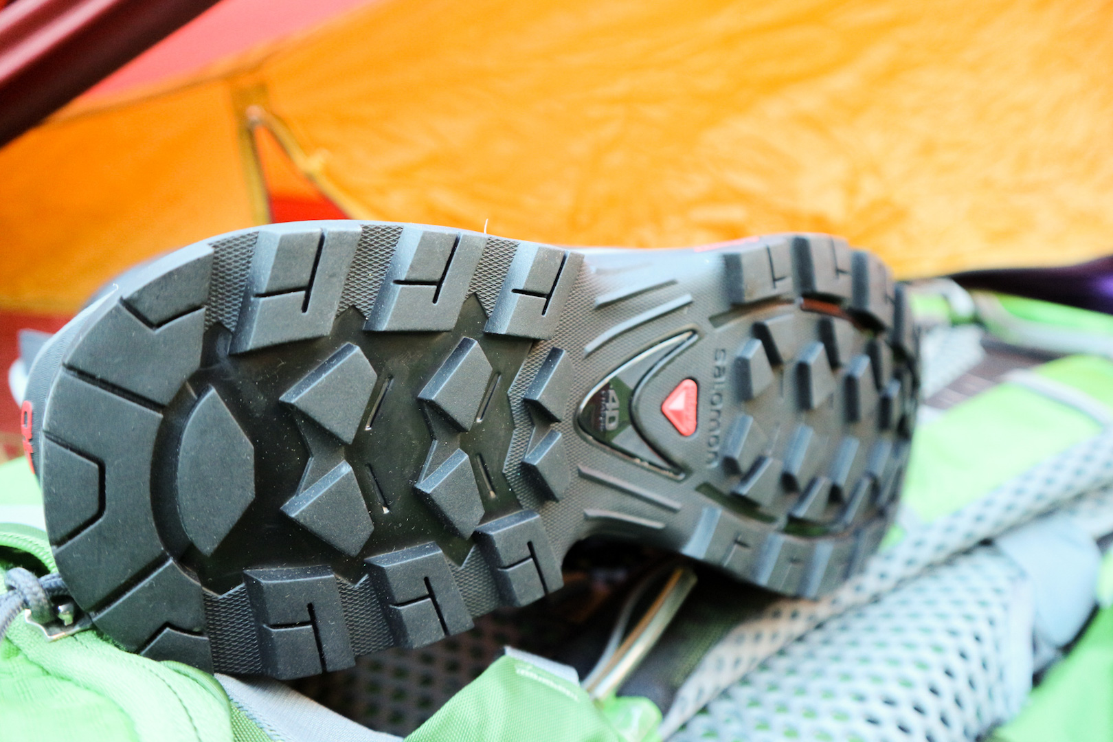 In the sole unit, there’s a removable Ortholite insole, an EVA foam midsole and then a Salomon Contragrip outsole.
