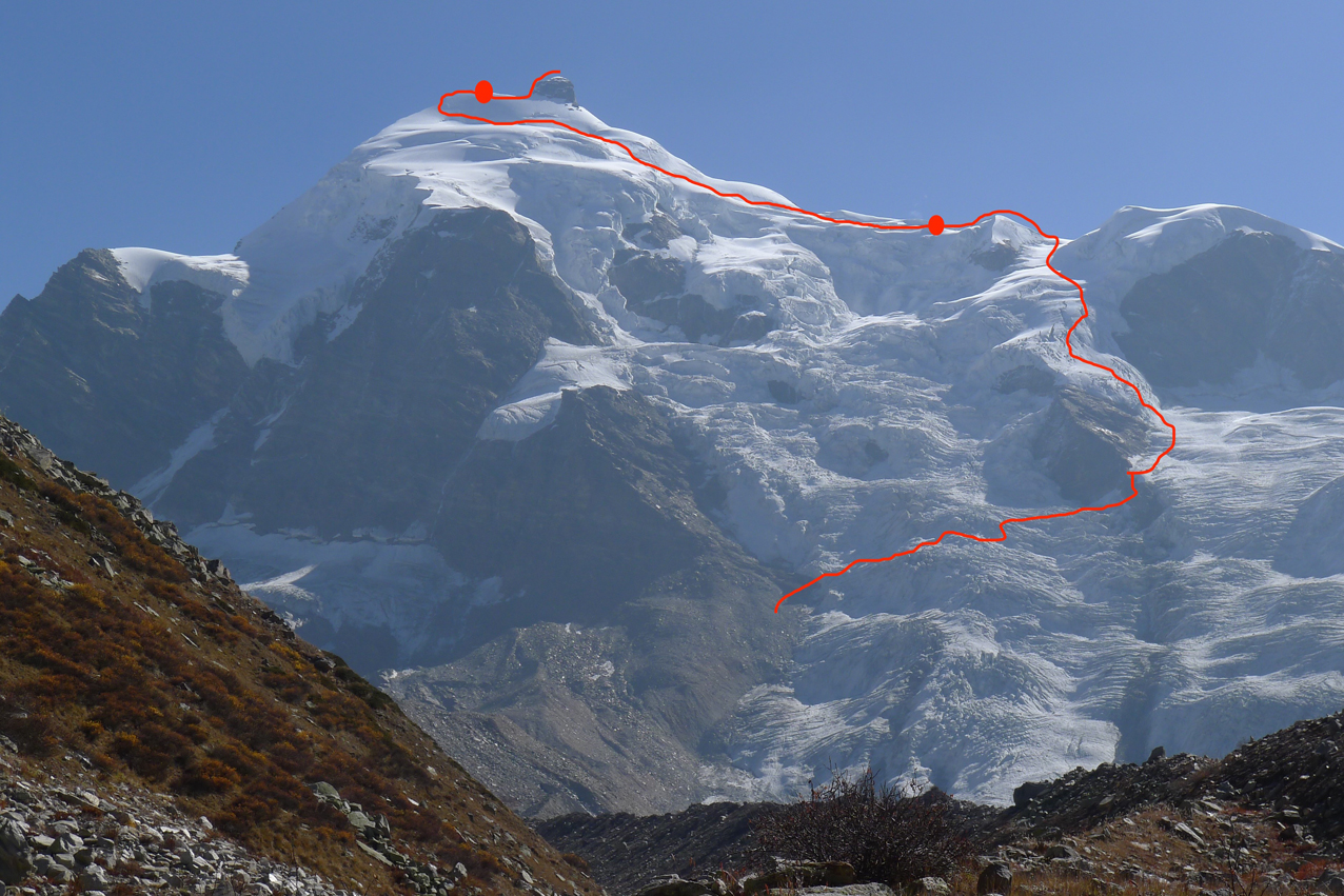 Fowler and Saunders left the UK in mid-September and flew to Delhi. From there, they had a three day drive to the road-head, followed by a two-day walk-in to establish base camp. After acclimatisation, the climb itself took five days, during an eight day round trip from base camp.