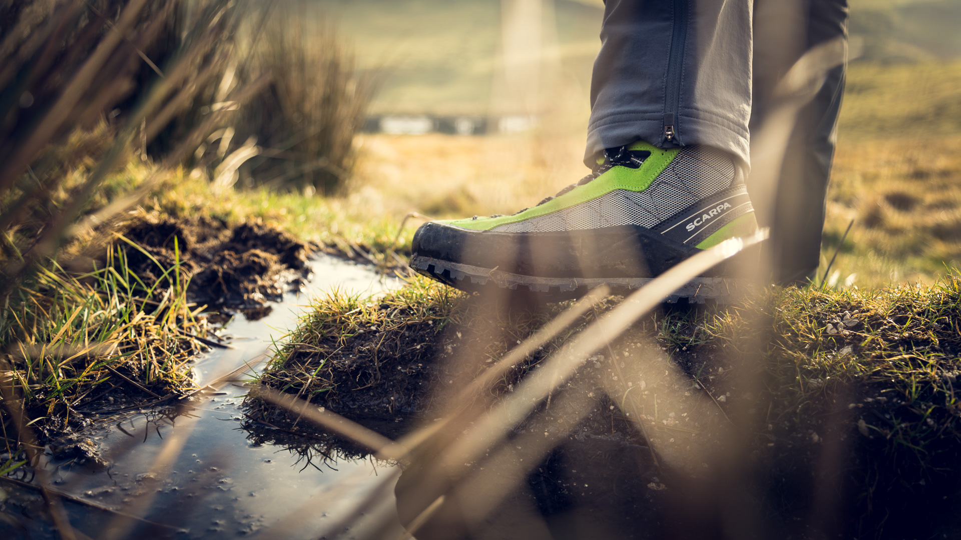 It’s super comfortable on the foot too thanks to a broad, but flattish forefoot and Scarpa’s wrap-around Sock Fit technology – also used in the excellent R-Evo walking boot – that feels like, well, being embraced by a friendly, wrap-around sock. Alpine-stye down-to-toe lacing helps there too giving a confidence-inspiring forefoot hold.