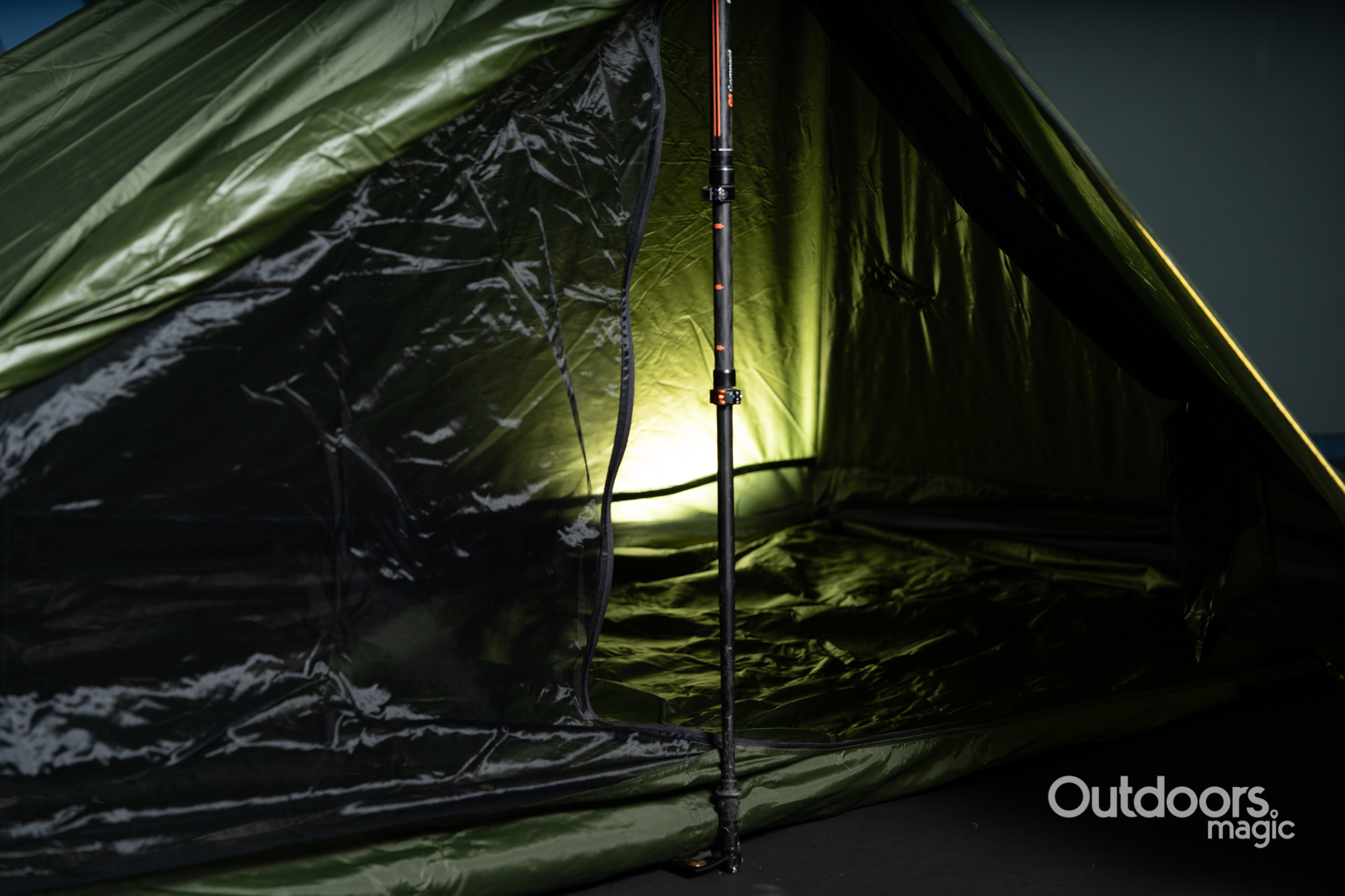 We should also add that the porch and sleeping area are separated by a big mesh door that covers almost the entire length of the tent. This means that when you unzip the flysheet and roll each side back fully, you’ll be able to really enjoy any views you might be lucky enough to have – right from the comfort of your sleeping bag. You also have the option to only partially open up the front of the tent or even raise it with the use of a second trekking pole.