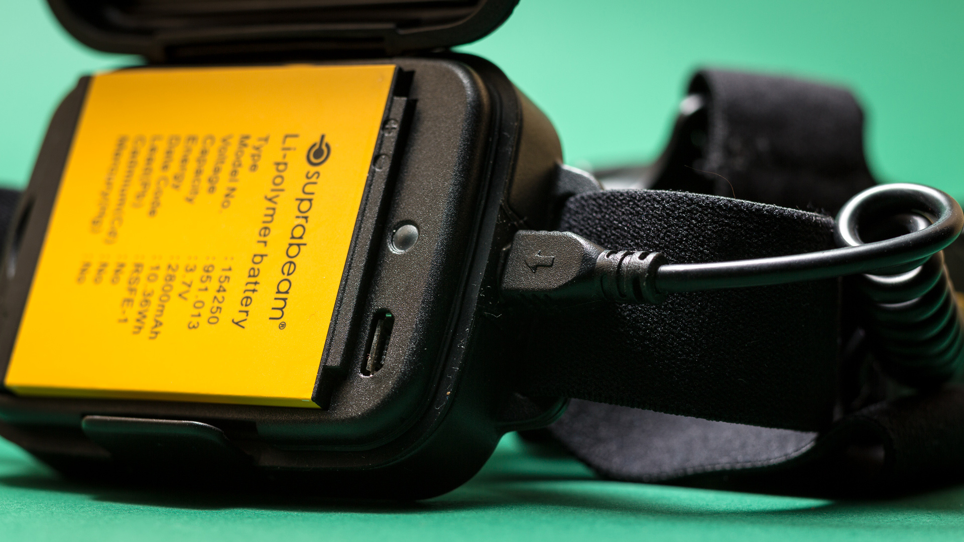 The lead connecting the battery to the head-unit is a weak point and failed on a previous Suprabeam headtorch on long-term test - Photo: Lukasz Warzecha (lwimages.co.uk)