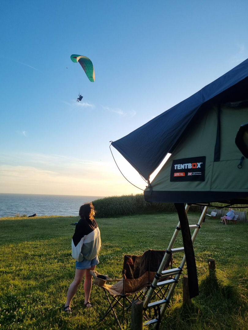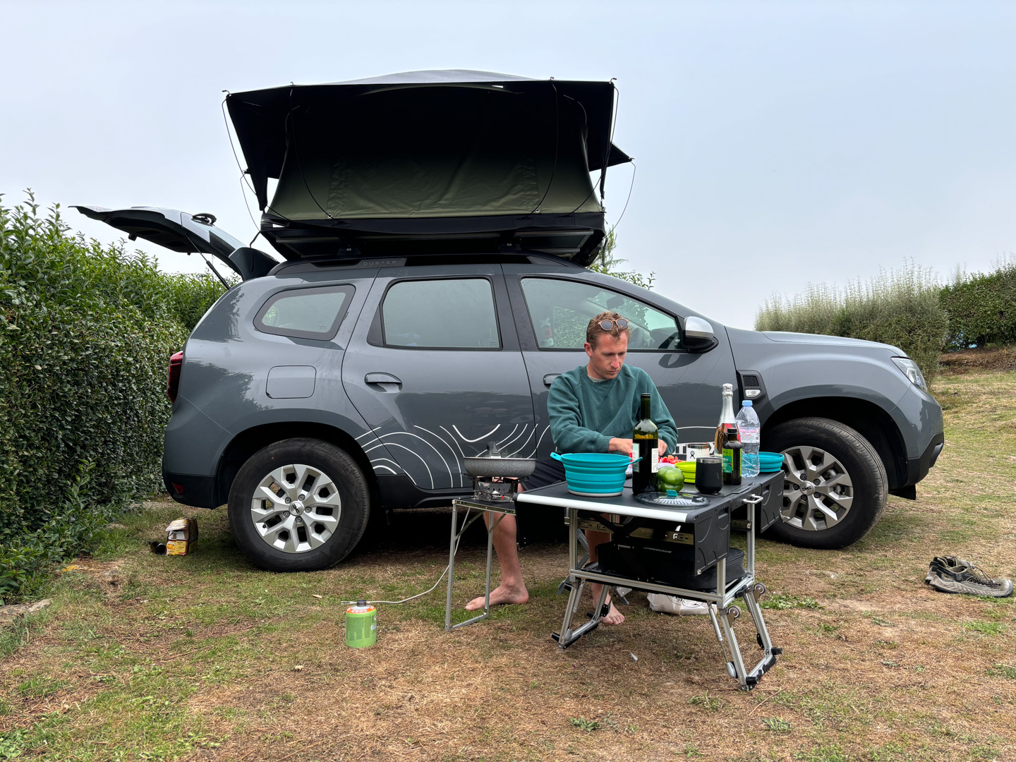 I was given the chance to borrow a Tentbox Lite XL recently, taking it across the English channel to tour for a week around Brittany in north-western France. With my partner, Hannah, we covered over a thousand of miles of road, slept in the Tentbox every night and cooked all our meals alongside it. We had a mix of weather with some hot evenings, one night with strong winds and we also got a bit of rain – luckily only a touch of it though. My overall opinion on the tent? It’s top notch. I absolutely loved it.