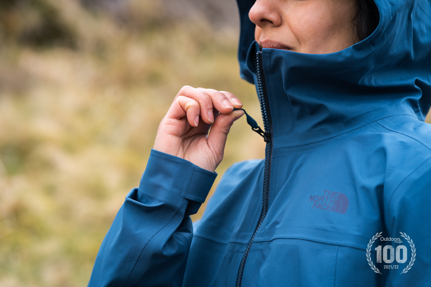 Futurelight is The North Face’s proprietary waterproof-breathable fabric – and they are making a big fuss about it. Their slick marketing waxes lyrical about the fabric, labelling it the “world’s most advanced” and guaranteeing that it has been “rigorously tested to withstand the harshest weather conditions”. But what is Futurelight? There’s a lot of scientific-sounding gobbledygook published about it, so here’s our attempt at summarising it simply. It’s a waterproof membrane with added air permeability thanks to the use of “nano-spinning”, a process which involves depositing a PU solution onto a surface from over 200,000 nozzles, apparently, to create a randomised matrix membrane (ok, looks like we’ve failed to describe it simply). Unlike conventional membranes, the nano structure of the Futurelight membrane allows air to pass through for better venting and breathability without sacrificing waterproofness and durability. That’s the theory, anyway. It’s a bold and interesting aim, and that’s why we’ve chosen the Apex Flex Futurelight jacket for our Outdoor 100.