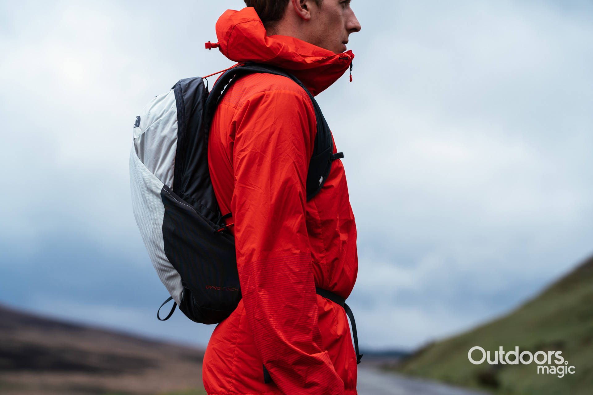 First up, let’s talk about the Chimera 18’s integrated Dyno Cinch System. This clever little feature allows you to minimise the pack’s volume and thus create greater load stability, all while you’re on the go. It essentially involves bungees on each shoulder – one with a toggled cinch on it – which both link up and hook onto the stretch mesh stash pocket across the pack’s front. If you’ve ever been moving fast on the trails and been irritated by a half empty pack bouncing around behind you, this nifty addition is a great, highly efficient, way to rapidly nip such issues in the bud. Together with the sternum clip and light strap around the waist, it creates a pack that will stay right against you even over the most uneven of terrain.