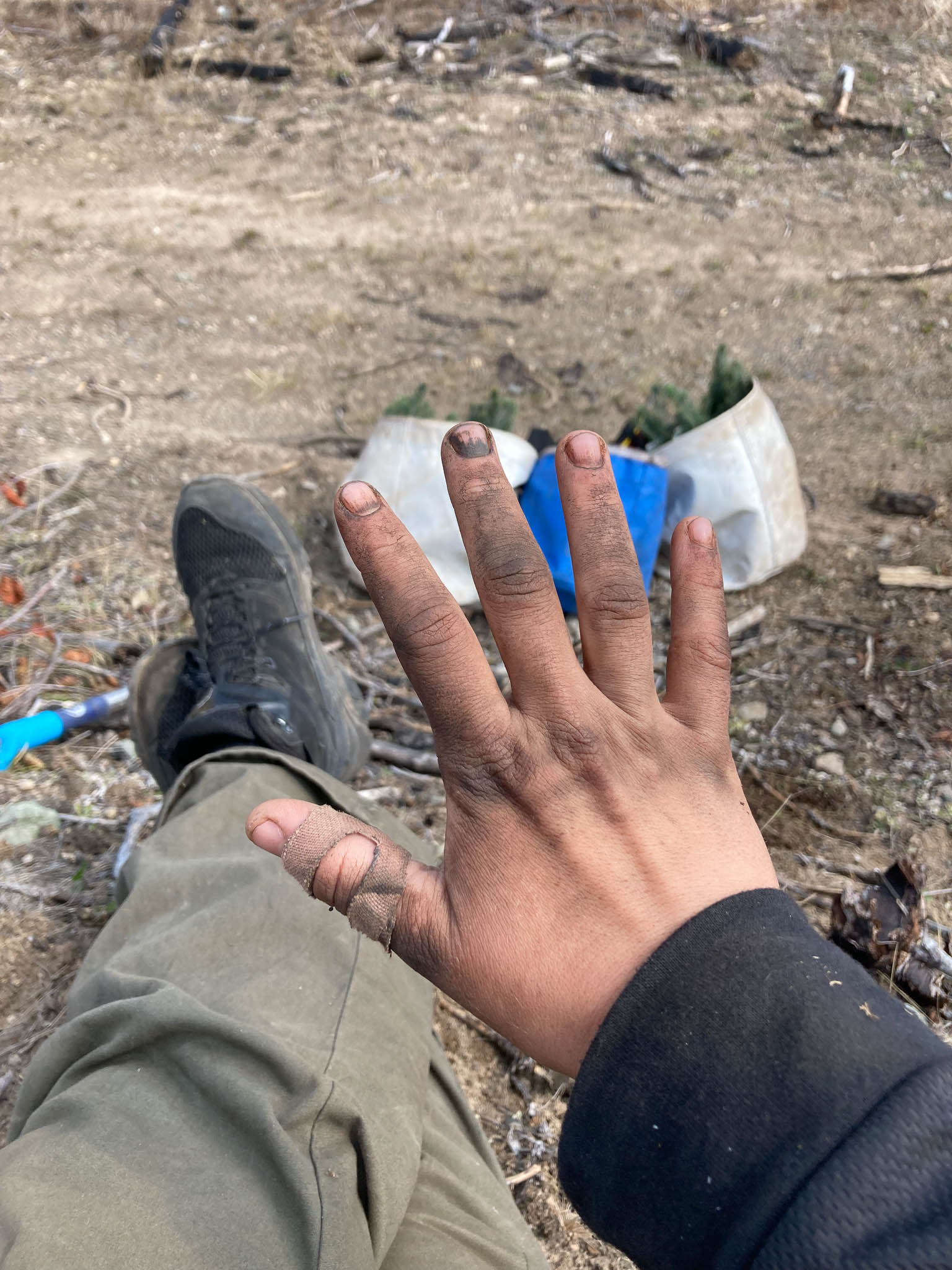 The Skutas (and my grubby hands) in use while tree planting in British Columbia, Canada.