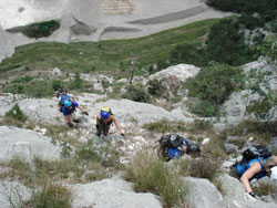 Footwear can range from normal walking shoes or hiking boots through to specialist Via Ferrata boots, although most people are comfortable enough in the former. So long as you have a pair of boots with reasonably stiff soles, to support your feet on smallish holds, there’s no need to fork out for anything new.