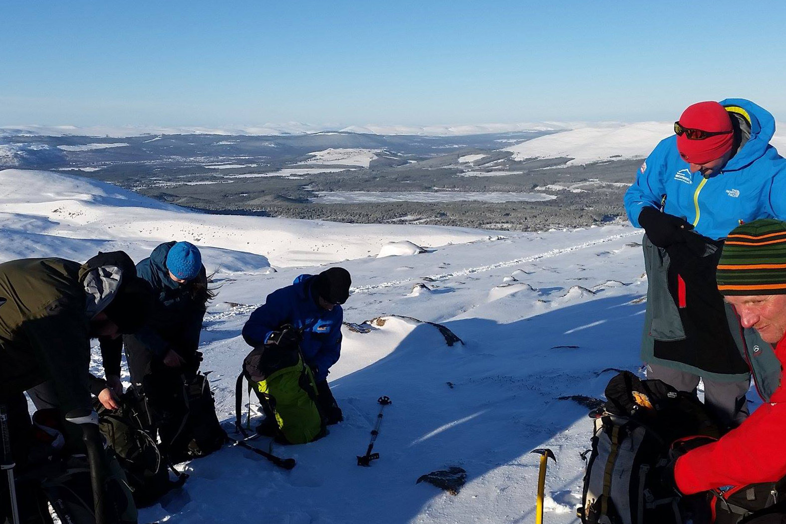 Secondly, learning the basics of timing is also essential for winter conditions as it gives you a rough ball park of when you are going to reach a point on a map. The most effective and accurate way to achieve this is to estimate how fast you’re walking, generally between 3-4kmph, then calculate your timing based on the exact distance you have to your destination. Then add on one minute journey time for every contour you ascend. To find out more on this watch Glenmore Lodge’s video on how to use timing to improve navigation.