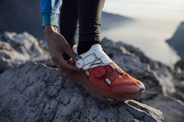 A fast and versatile hiking shoe with grippy lugs and an innovative lacing system.