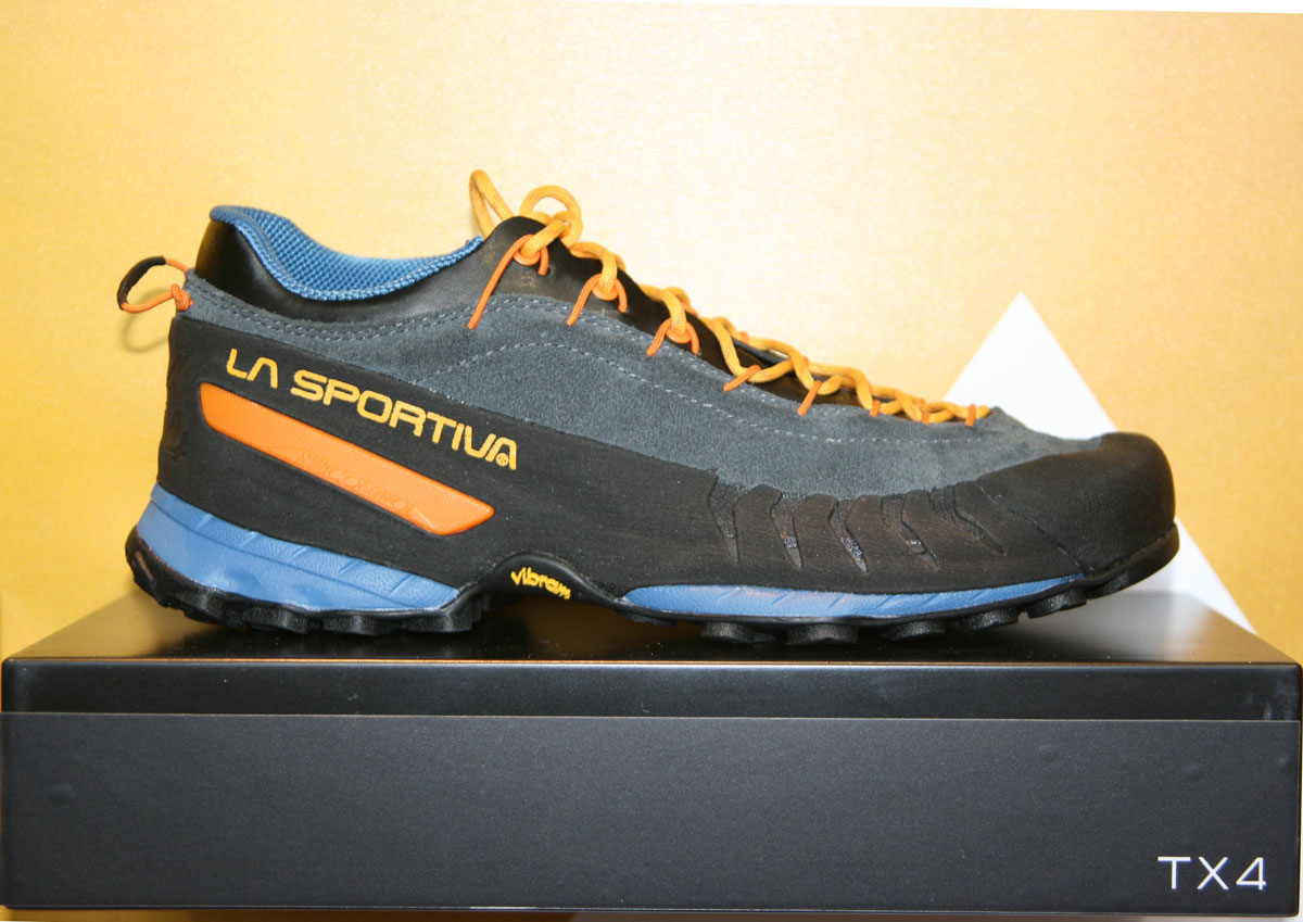 There are new technical approach shoes in the range too. The TX4 – see the images right – is a fairly conventional sort of creation with lacing based on the established Mythos rock shoe. It has a suede upper, full rubber rand for durability on the rock, a shock-absorbing EVA midsole and a Vibram MegaGrip outsole complete with dotted forefoot and aggressive ‘Trail Bite Hell’ to avoid those embarrassing wet and grassy descent slope windmilling moments.
