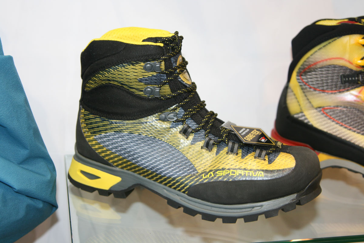 It’s a distinctive beast with black and yellow colour scheme, distinctive seam-reducing TPU welded upper, a Gore-Tex lining, dual-density midsole and a Vibram sole complete with blocked-out ‘Climbing Zone’ toe, though this is very definitely a trekking boot not a technical alpine one, though hopefully it’ll share La Sportiva’s renowned fit.