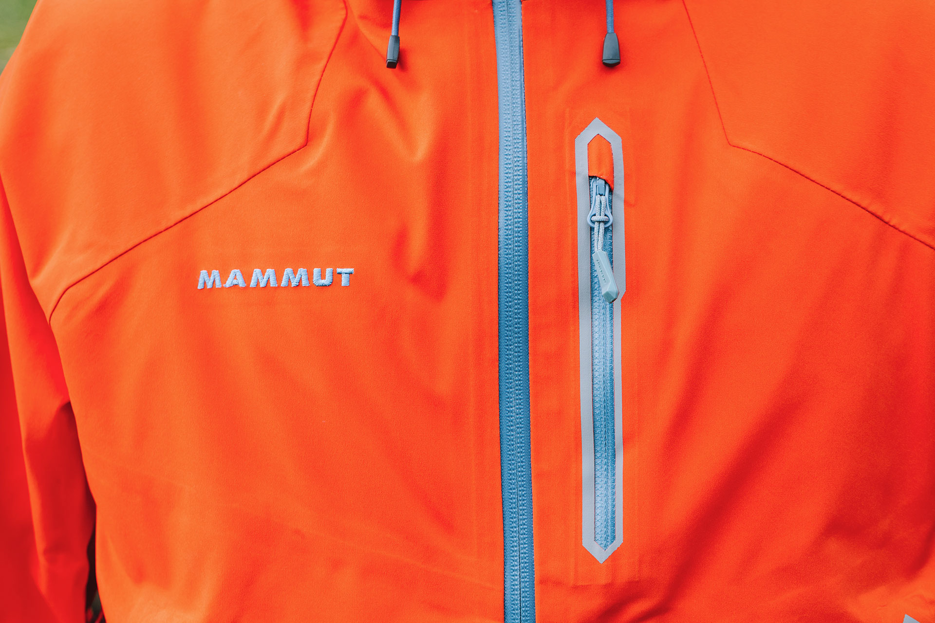This is a versatile all-rounder of a hardshell jacket, designed to suit a variety of outdoor activities, from hill-walking to scrambling to biking to climbing. The bulk of the jacket is made from Mammut’s own DryTech fabric, a highly waterproof (rated up to 20,000mm), breathable material which interestingly works thanks to its hydrophilic (as opposed to hydrophobic) properties. The membrane inside absorbs perspiration like a sponge, locking it in before releasing it through the material and into the air.