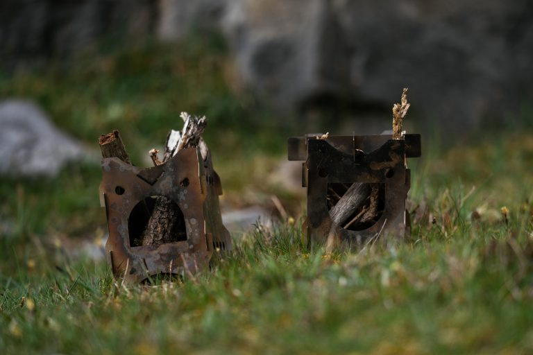 A friendly (or angry) stove that burns twigs to give you food, warmth and morale